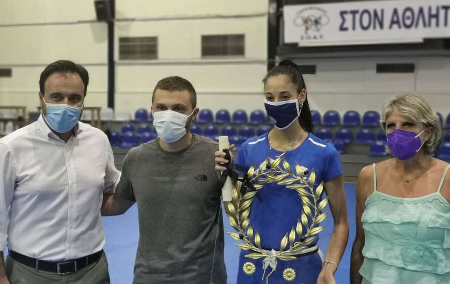 Ο Δήμαρχος Τρικκαίων υπενθύμισε τις πρωτιές των Τρικάλων όχι μόνο στον αθλητισμό (με Γεωργαλή, Αβράμη, Παπανικολάου, Σακοράφα και πολλούς άλλους σε Ολυμπιακούς Αγώνες και άλλες μεγάλες διακρίσεις) αλλά και στη μουσική. Επιδίδοντας το μετάλλιο στην 21χρονη πρωταθλήτρια του ΣΟΑΤ, επεσήμανε ότι «η επιβράβευση σε μια περίοδο έλλειψης στοχοθεσίας, αποδεικνύει ότι η δική της σκληρή δουλειά, η θέσπιση στόχων, δείχνει πως τους πετυχαίνει». Και είμαι σίγουρος, συνέχισε, ότι «θα μας απασχολήσει ξανά στο μέλλον» και τότε, «όπως ειπώθηκε στο Δημοτικό Συμβούλιο, και τείχη θα δημιουργήσουμε για να τα γκρεμίσουμε!».