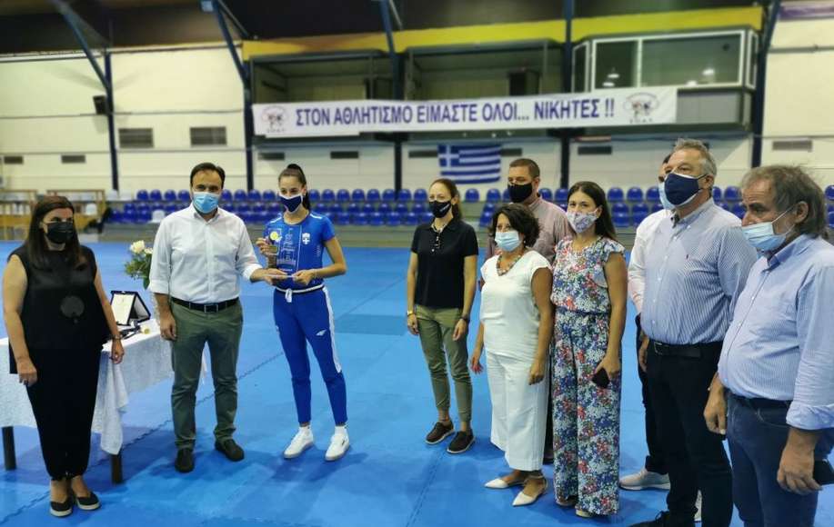 Στη συνέχεια, έπαινο επέδωσε ο θεματικός αντιπεριφερειάρχης Ντίνος Μπάρδας, ομοίως συγχαίροντας την τρικαλινή αθλήτρια.