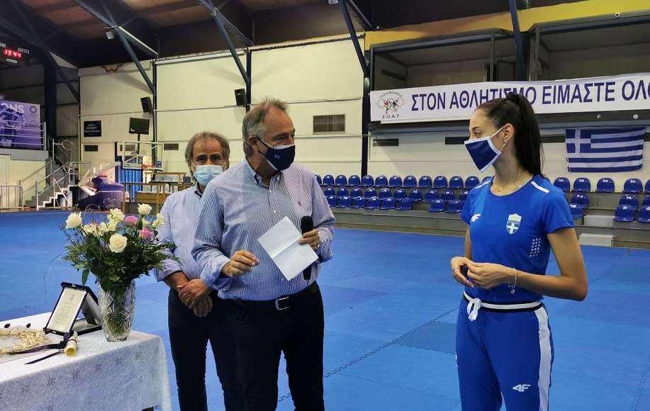 Εκπροσωπώντας το Δημοτικό Συμβούλιο, που ομόφωνα αποφάσισε να υιοθετήσει τη σχετική πρόταση σε έκτακτη συνεδρίασή του τη Δευτέρα 16 Αυγούστου 2021, ο κ. Παπαστεργίου τίμησε την αθλήτρια από το Μεγαλοχώρι του Δήμου Τρικκαίων που «με αυτό της το κατόρθωμα σήκωσε ψηλά τα Τρίκαλα, σήκωσε ψηλά το ελληνικό τάε κβο ντο».