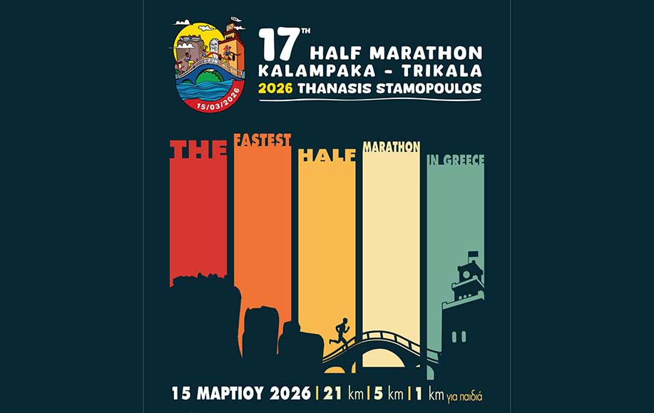 Ο Σύλλογος Δρομέων Τρικάλων προκηρύσσει τον 17ο Ημιμαραθώνιο Δρόμο Καλαμπάκα-Τρίκαλα Θανάσης Σταμόπουλος, για την Κυριακή 15 Μαρτίου 2026.