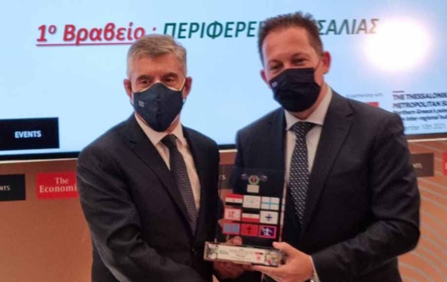 Με το πρώτο Βραβείο για το Περιβάλλον GREEN AWARD 2021 στην κατηγορία «Πρότυπες Περιβαλλοντικές Πολιτικές σε Περιφέρεια» τιμήθηκε η Περιφέρεια Θεσσαλίας από τον διεθνή ενημερωτικό φορέα THE ECONOMIST και το powergame.gr. Το βραβείο παρέλαβε ο Περιφερειάρχης Θεσσαλίας Κώστας Αγοραστός, στο αναπτυξιακό συνέδριο Τhe Thessaloniki Metropolitan Summit, που αποτελεί Τhe Εconomist Εvent σε συνεργασία με το powergame και πραγματοποιήθηκε σε κεντρικό ξενοδοχείο της Θεσσαλονίκης, παρουσία ελλήνων και ξένων αξιωματούχων, υπουργών της κυβέρνησης, επιχειρηματιών και εκπροσώπων φορέων.