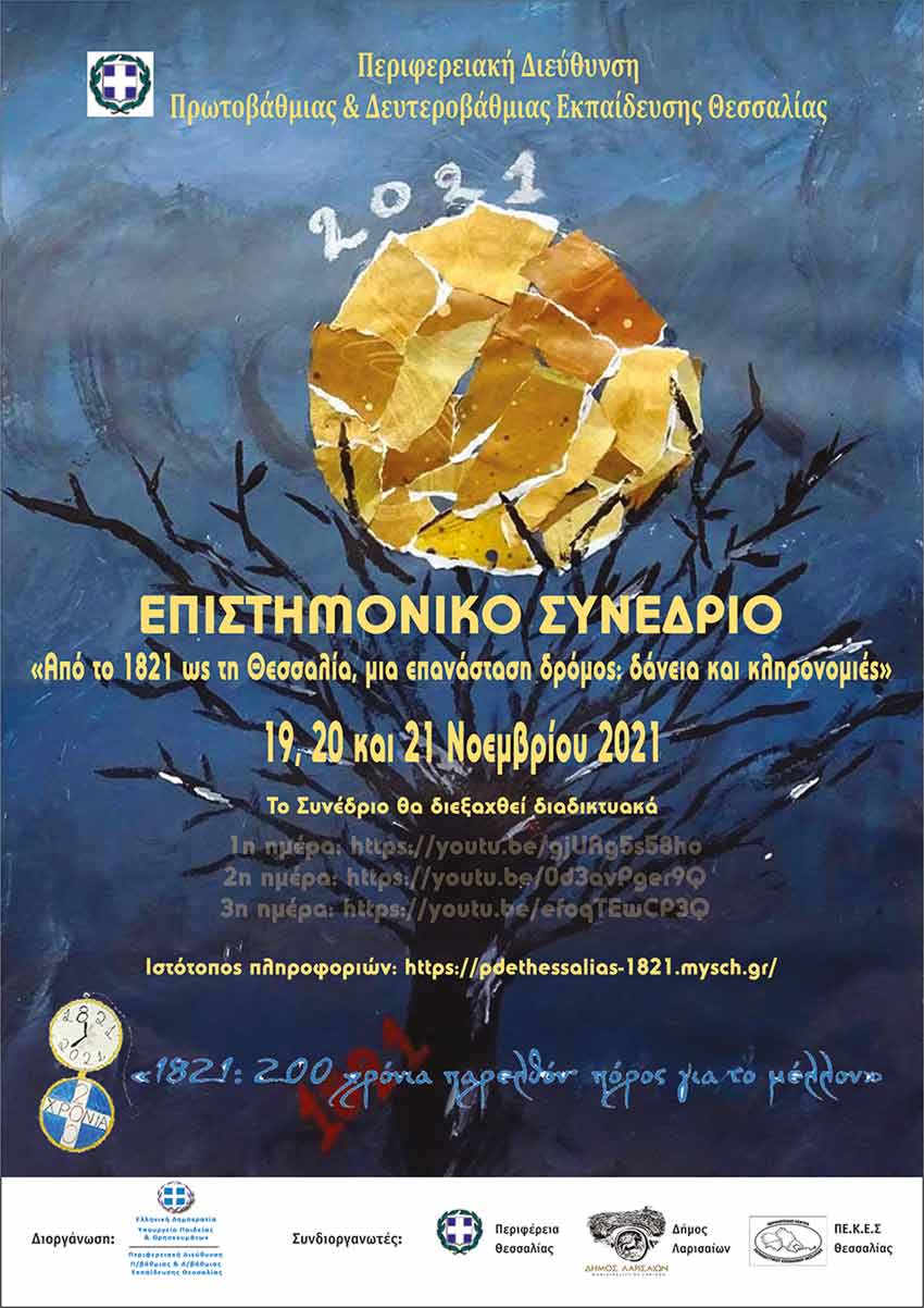 Η Περιφερειακή Διεύθυνση Πρωτοβάθμιας και Δευτεροβάθμιας Εκπαίδευσης Θεσσαλίας σε συνεργασία με την Περιφέρεια Θεσσαλίας, τον Δήμο Λαρισαίων και το ΠΕ.Κ.Ε.Σ. Θεσσαλίας συνεχίζοντας τις δράσεις για την Επέτειο των διακοσίων χρόνων από την Επανάσταση του 1821 με τίτλο «200 Χρόνια παρελθόν· πόρος για το μέλλον» πραγματοποιεί Επιστημονικό Συνέδριο, με θέμα: