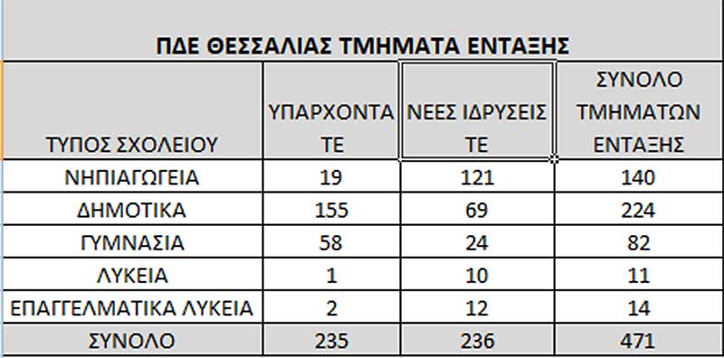 Η Περιφερειακή Διεύθυνση Πρωτοβάθμιας και Δευτεροβάθμιας Εκπαίδευσης Θεσσαλίας ανακοινώνει με ιδιαίτερη ικανοποίηση την ίδρυση 236 νέων Τμημάτων Ένταξης (Τ.Ε.) σε δημόσιες σχολικές μονάδες Πρωτοβάθμιας και Δευτεροβάθμιας Εκπαίδευσης, Γενικής και Επαγγελματικής Κατεύθυνσης, εντός της Περιφέρειας Θεσσαλίας στο σύνολο των 3448 Τμημάτων Ένταξης που ιδρύονται σε ολόκληρη την Ελλάδα.