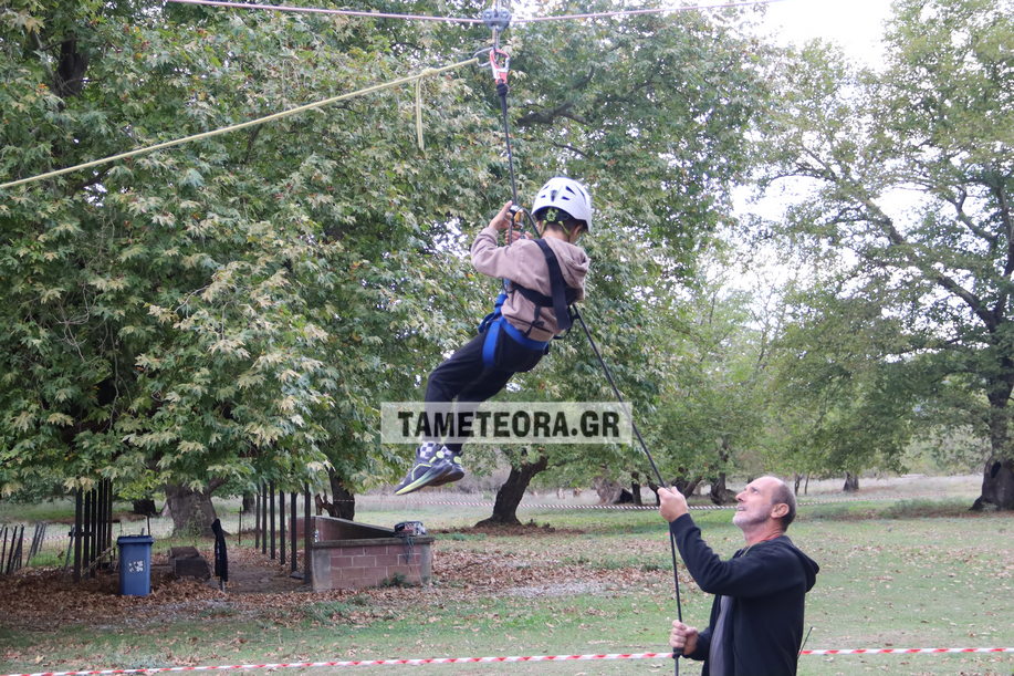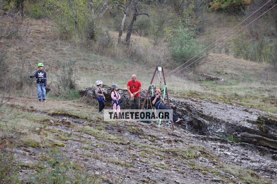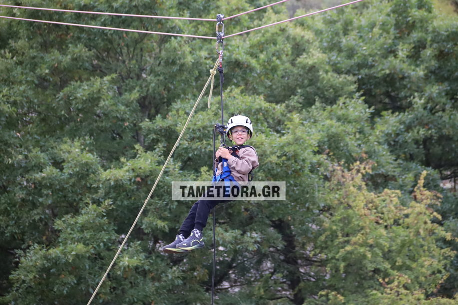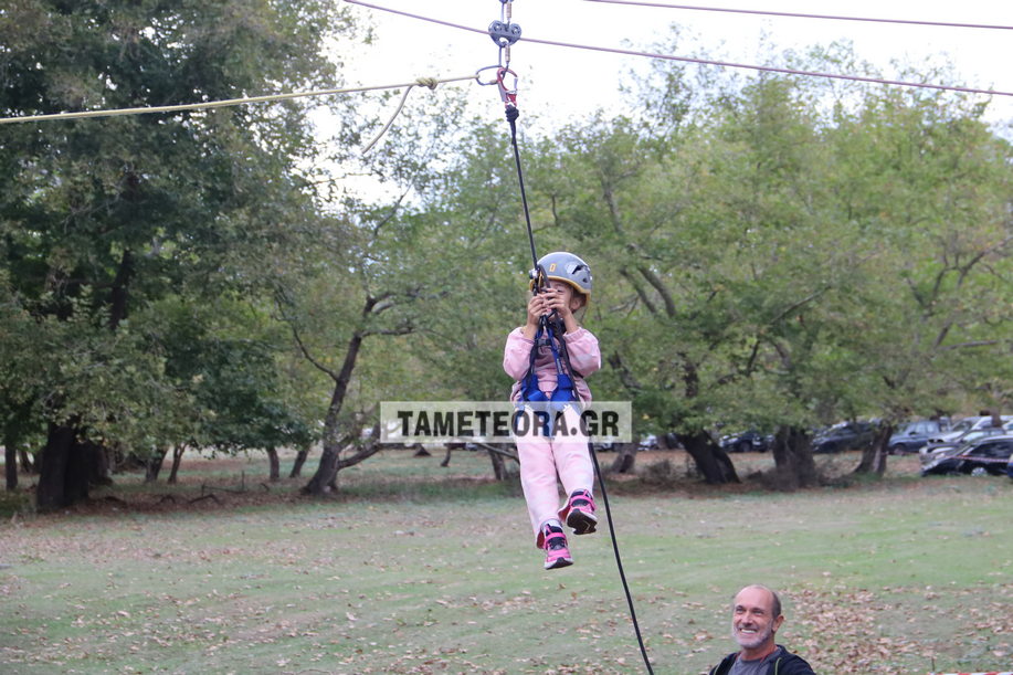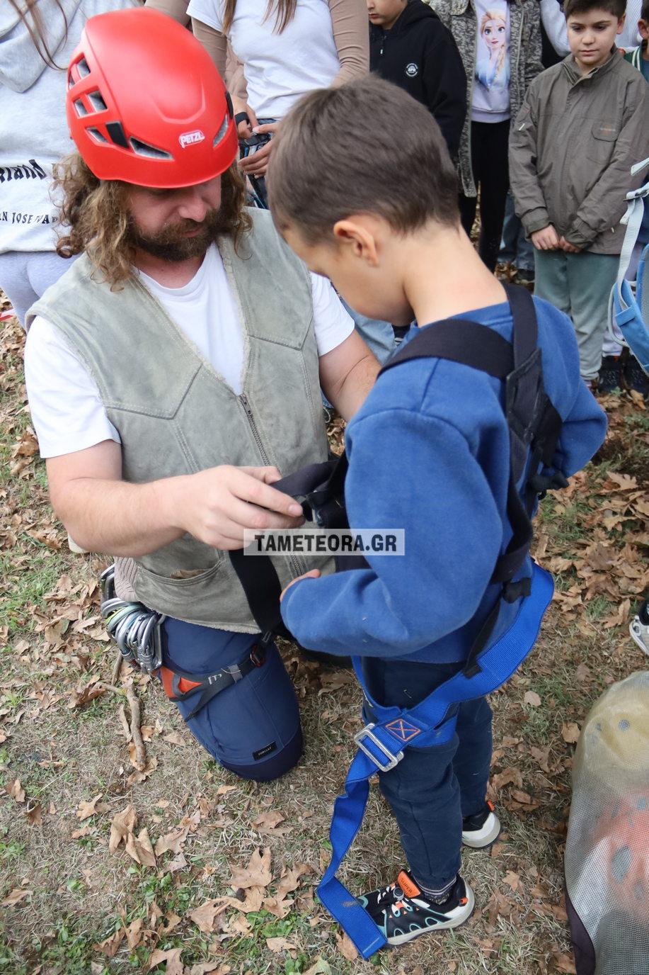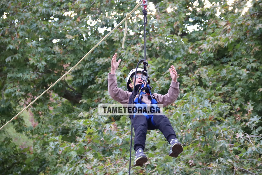 Τα παιδιά χάρηκαν ιδιαίτερα το zip line, το οποίο μόχθησαν να στήσουν από το πρωί τα μέλη της Ορειβατικής Λέσχης Καλαμπάκας.