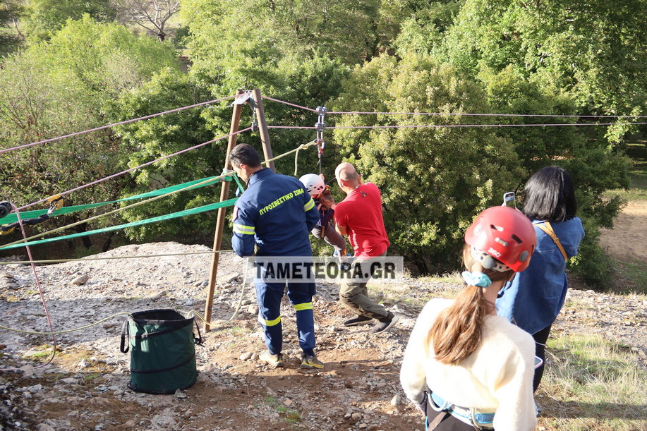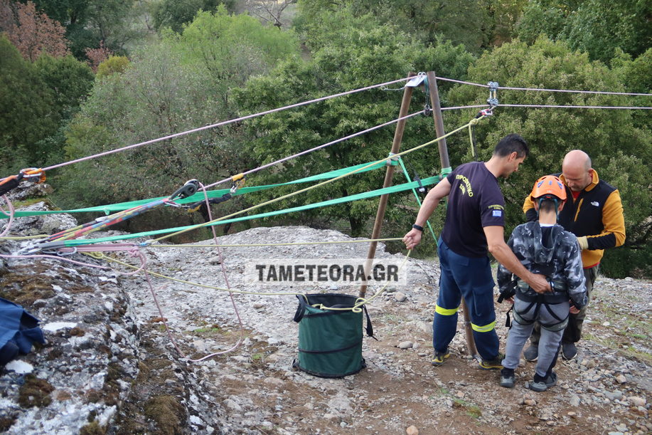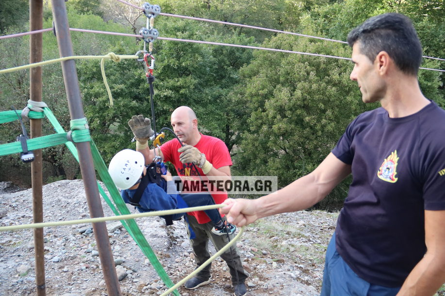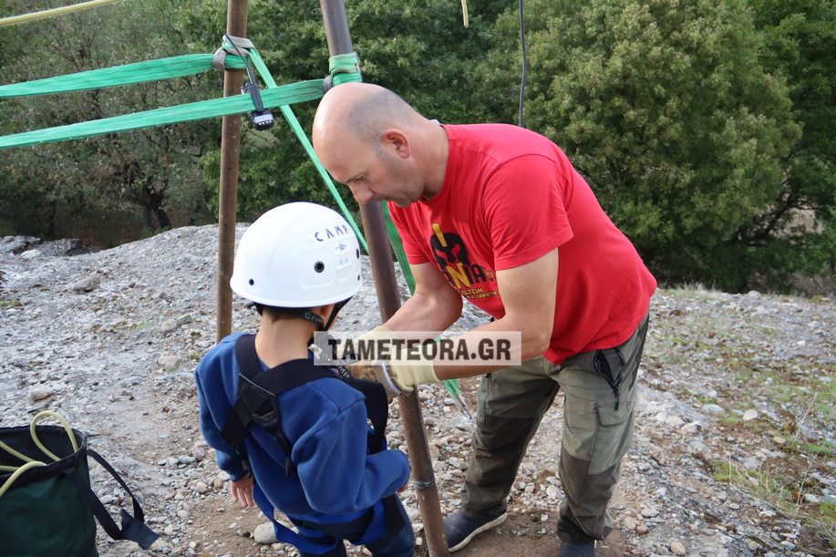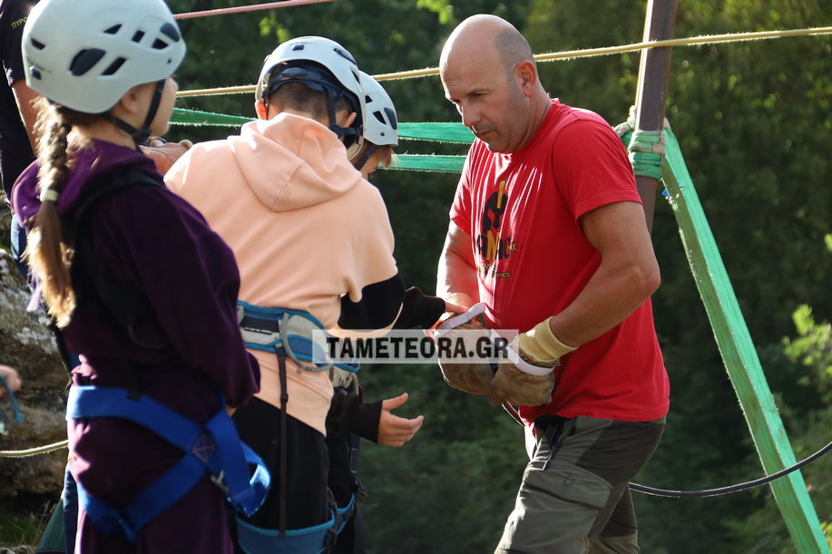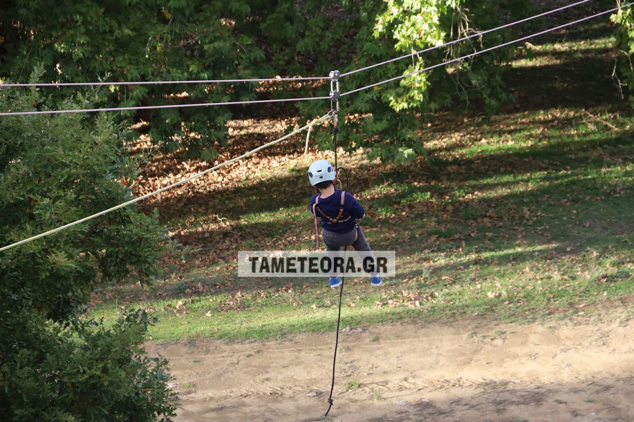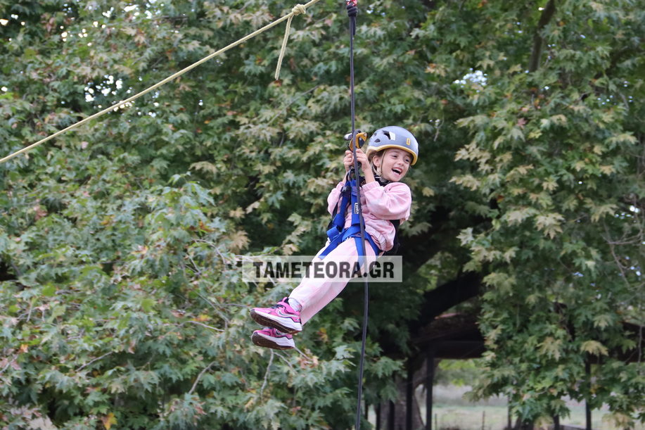 Τα παιδιά χάρηκαν ιδιαίτερα το zip line, το οποίο μόχθησαν να στήσουν από το πρωί τα μέλη της Ορειβατικής Λέσχης Καλαμπάκας.