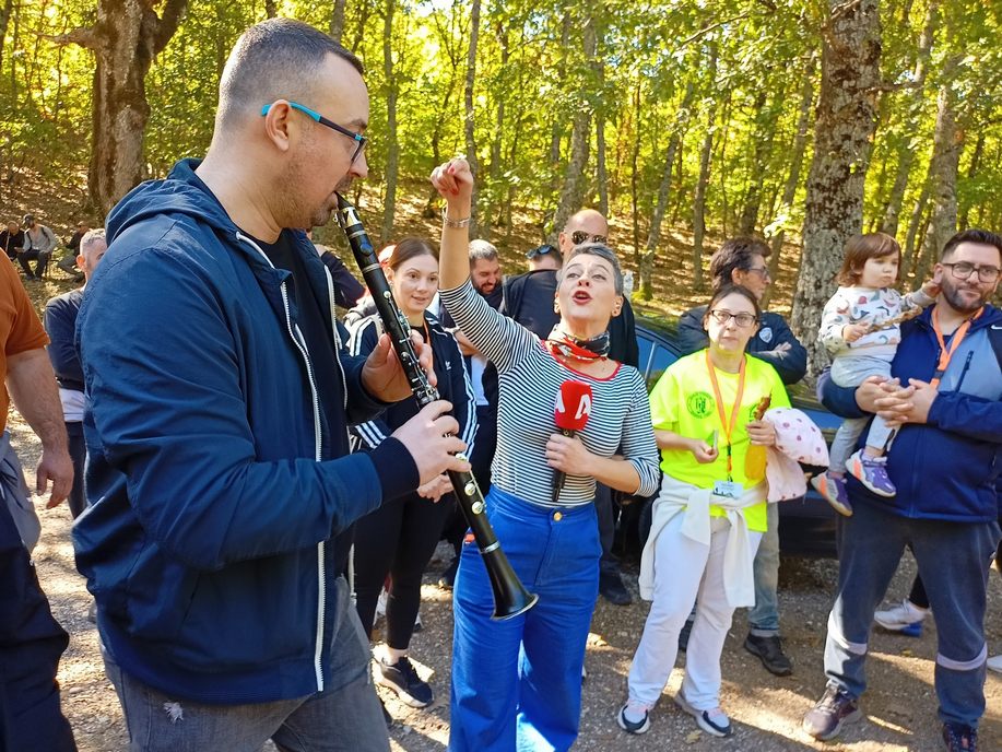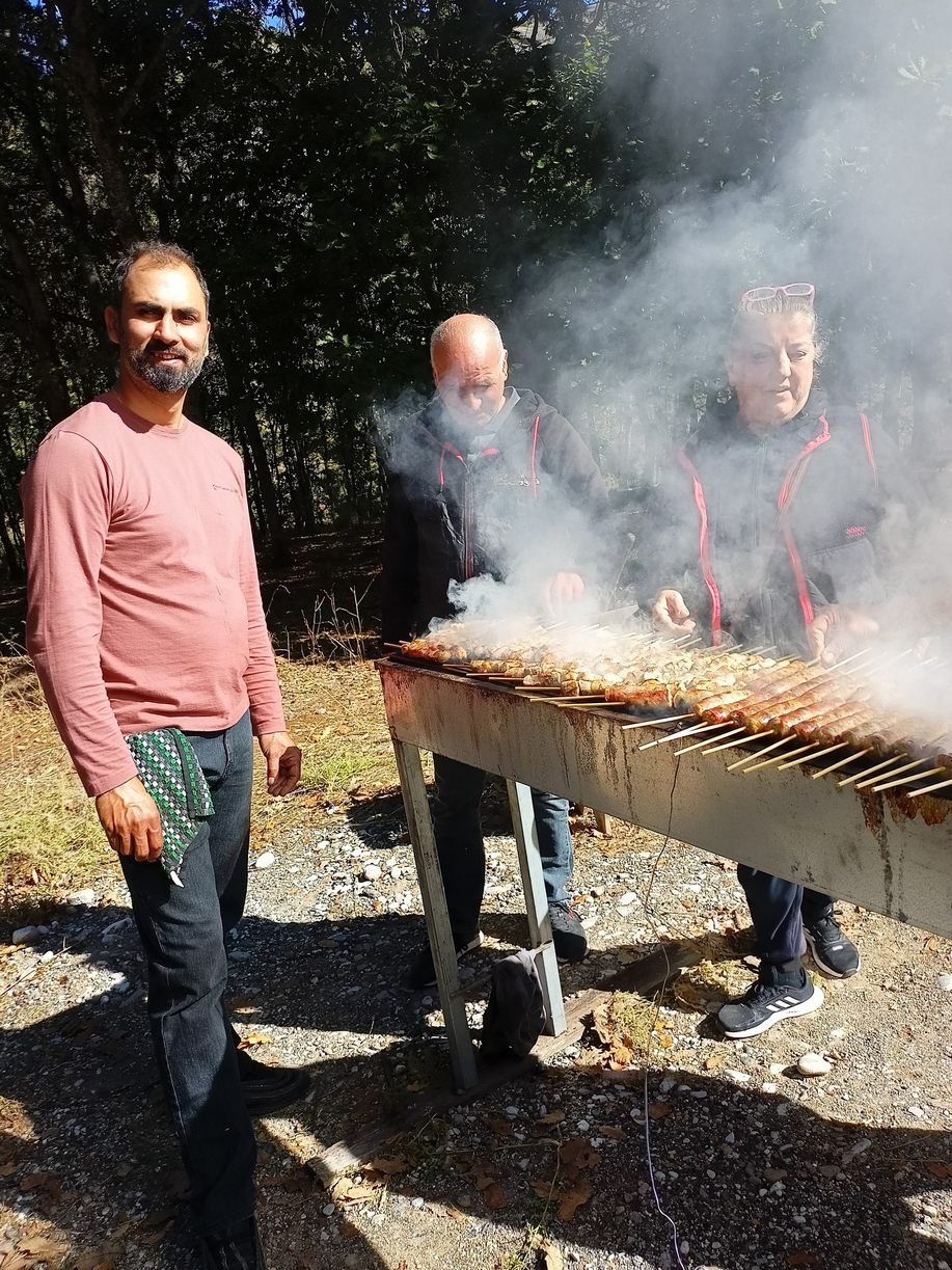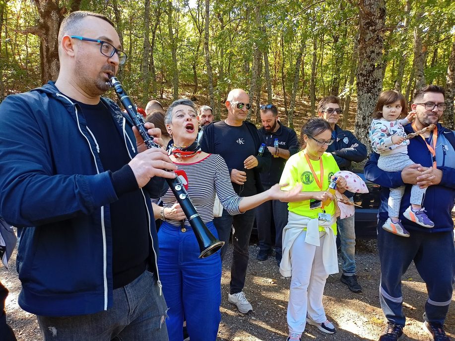 Στο ξωκκλήσι της Ζωοδόχου Πηγής τους πεζοπόρους τους περίμενε μια μικρή γιορτή με αναψυκτικά, σουβλάκια και λουκάνικα, ενώ ο Μιχάλης Ράπτης με το κλαρίνο του έδωσε έναν ιδιαίτερο τόνο.