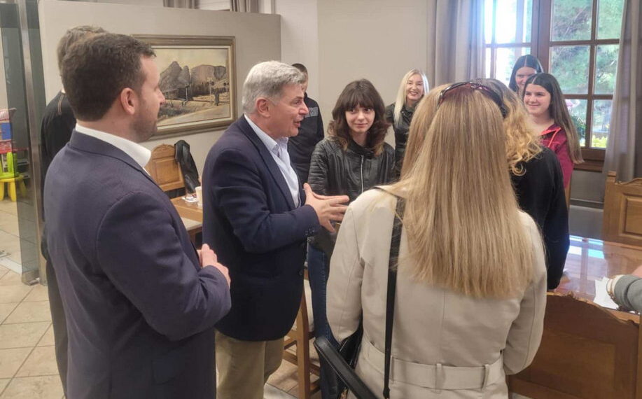 Εκτός από τη συνάντησή του με τον Δήμαρχο, ο κ. Φαραντούρης συναντήθηκε με μαθητές του ΕΠΑΛ Καλαμπάκας, το οποίος πρόσφατα ανακηρύχθηκε ως υποψήφιο Σχολείο – Πρέσβης του Ευρωπαϊκού Κοινοβουλίου (EPAS) για το σχολικό έτος 2025-2026.
