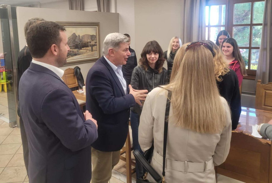 Εκτός από τη συνάντησή του με τον Δήμαρχο, ο κ. Φαραντούρης συναντήθηκε με μαθητές του ΕΠΑΛ Καλαμπάκας, το οποίος πρόσφατα ανακηρύχθηκε ως υποψήφιο Σχολείο – Πρέσβης του Ευρωπαϊκού Κοινοβουλίου (EPAS) για το σχολικό έτος 2025-2026.