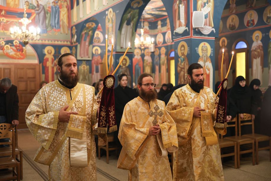 Πιο συγκεκριμένα, στην Ιερά Μονή Αγίων Θεοδώρων, τελέσθηκε η ακολουθία του Όρθρου της εορτής των Εισοδίων της Θεοτόκου και εν συνεχεία η θεία Λειτουργία, προεξάρχοντος του Σεβ. Μητροπολίτου Σταγών και Μετεώρων κ. Θεοκλήτου και συλλειτουργούντων των Ηγουμένων, Ιερομονάχων και Ιεροδιακόνων των Ιερών Μονών της τοπικής Εκκλησίας.