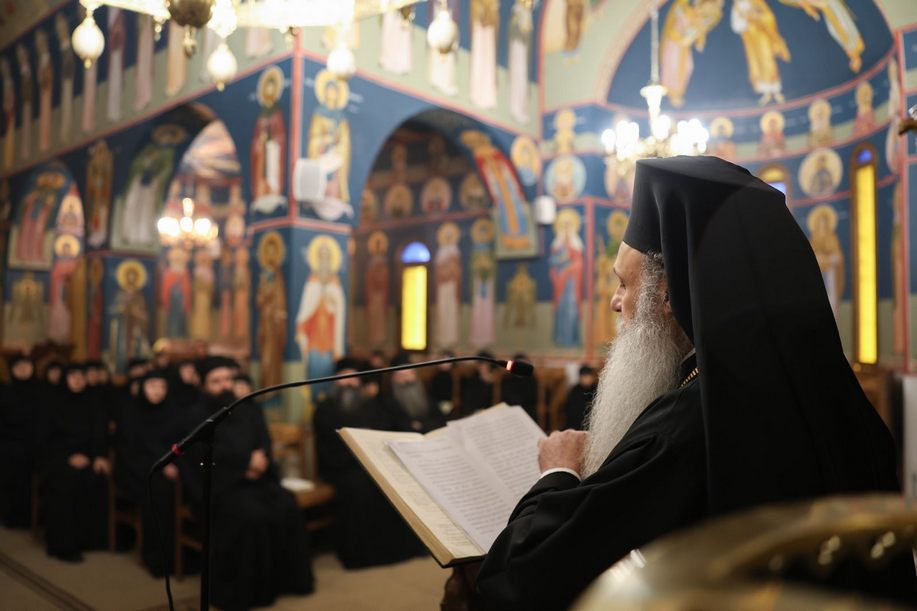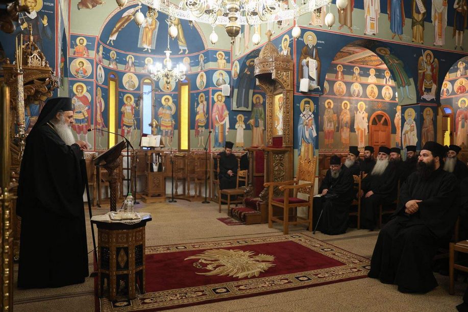Μετά την παράθεση πρωινού γεύματος στο Αρχονταρίκι της Μονής, ο Σεπτός μας Ποιμενάρχης κήρυξε την έναρξη της Συνάξεως, απευθυνόμενος στις Μοναχές και τους Μοναχούς με πατρικά και παραινετικά λόγια. Αναφέρθηκε στην αξία του μοναχισμού και τις αρετές που πρέπει να διακρίνουν την ισάγγελη πολιτεία, εκφράζοντας παράλληλα την ικανοποίησή του για την διενέργεια της Συνάξεως.