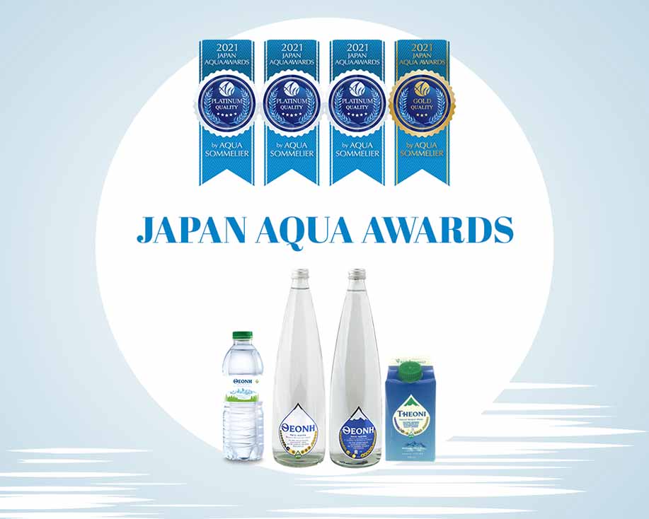 Οι 4 νέες διεθνείς διακρίσεις για το διαμάντι της Πηγής Γκούρα, το ΘΕΟΝΗ, ενισχύουν τη θέση του ως το κορυφαίο Ελληνικό Φυσικό Μεταλλικό Νερό σήμερα, που συμπληρώνει τα 38 Διεθνή Βραβεία Ποιότητας και Γεύσης. Τα JAPAN AQUA AWARDS διοργανώθηκαν για 2η συνεχόμενη χρονιά από το Japan Aqua Sommelier Association (J.A.S.A.) με στόχο την ανάδειξη της ελίτ των εισαγόμενων προϊόντων στην κατηγορία Νερού. Οι διακρίσεις περιλαμβάνουν 3 επίπεδα: «Βραβείο Πλατίνας» (Καλύτερο Βραβείο), «Χρυσό Βραβείο» και «Ασημένιο Βραβείο» και στοχεύουν στη δημιουργία ενός αισθήματος ασφάλειας στους καταναλωτές μέσω αυστηρής αξιολόγησης.