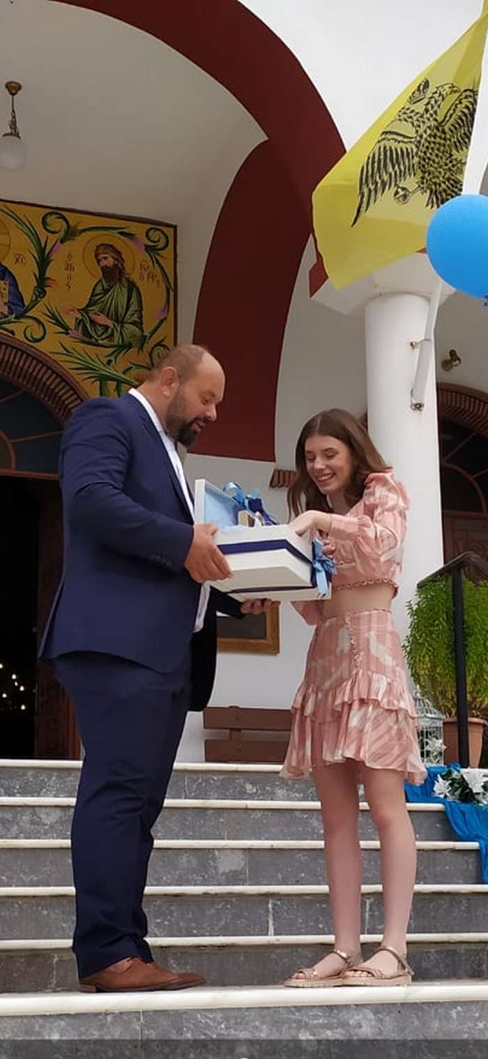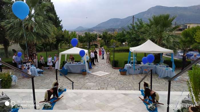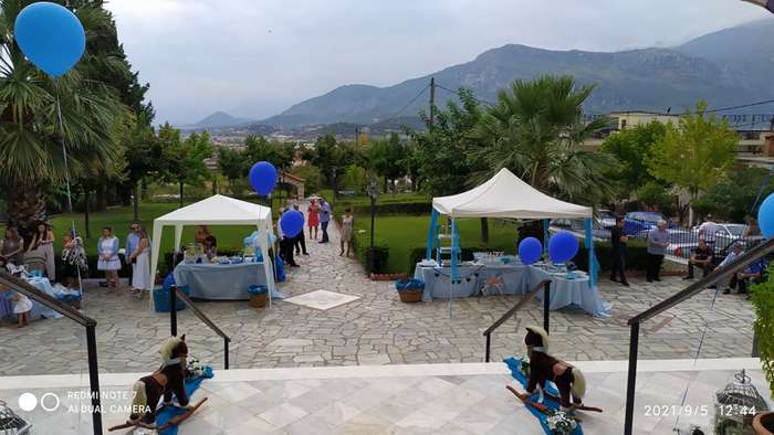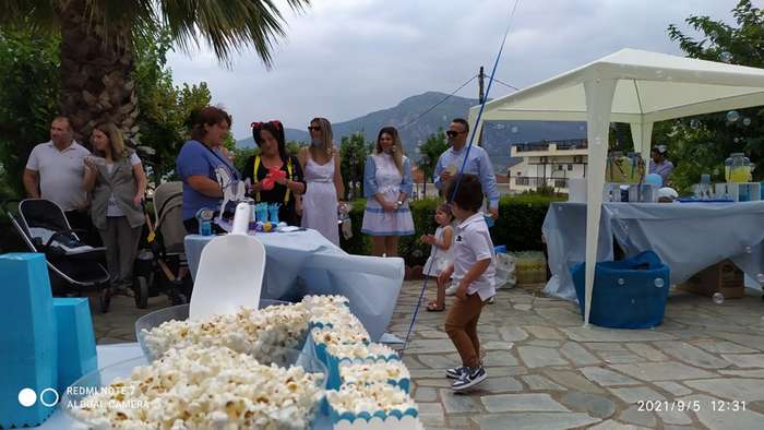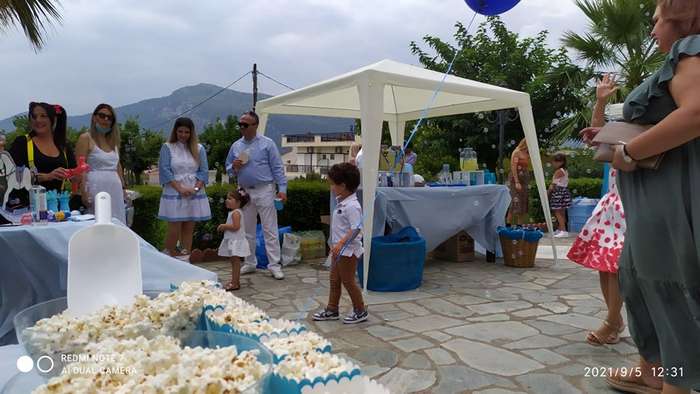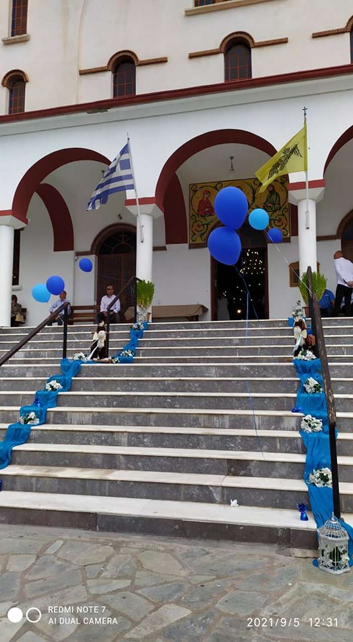 Για τα μικρά παιδιά φρόντισε η παιδαγωγός Βίκυ Φαγκριδα, αφού όπως θα δείτε, έξω από την εκκλησία είχε στηθεί το ιδανικό σκηνικό με μπαλόνια αλλά και εντυπωσιακές εκπλήξεις για τα παιδάκια.