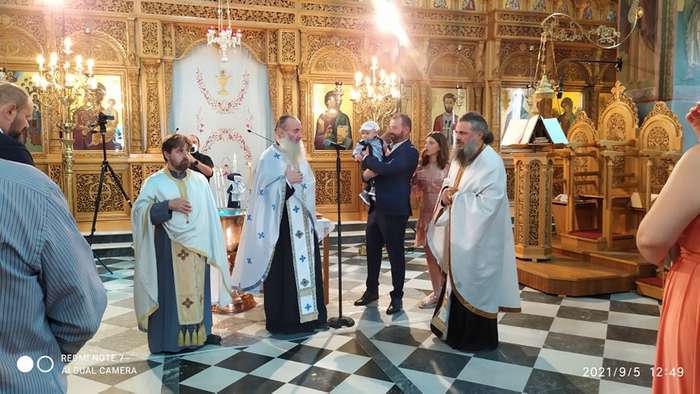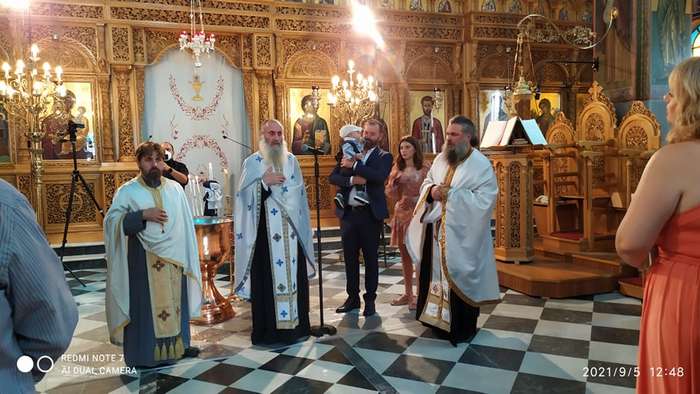 Το μυστήριο ετέλεσε ο Πανοσιολογιώτατος Αρχιμανδρίτης κ. Σωτήριος Ντάφης, θείος του νεοφωτίστου, ευγενώς προσκληθείς υπό της οικογενείας, συμπαραστατούμενος από τους ιερείς του Ναού.