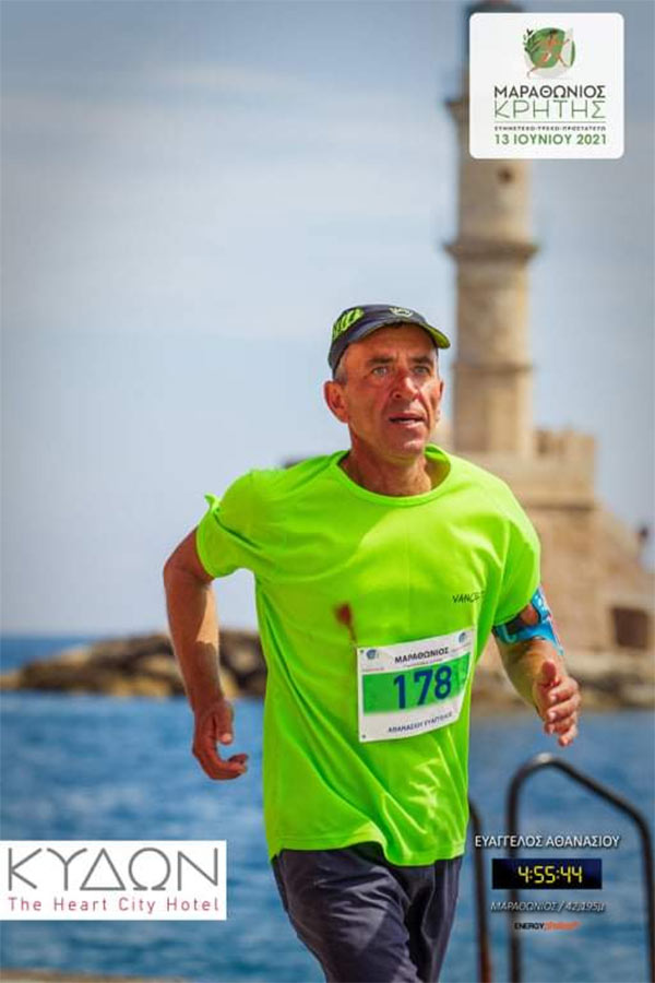 Μάλιστα, με ζωγραφισμένη τη χαρά στο πρόσωπό του και με μεγάλη ικανοποίηση μου ανακοίνωσε πως τερμάτισε στον φετινό Μαραθώνια δρόμο, που διεξήχθη στις 13-6-2021 με τη συμμετοχή 350 δρομέων, στον ικανοποιητικό χρόνο των 4 ωρών, 55 λεπτών και 44 δευτερολέπτων (ο πρώτος σημείωσε χρόνο 2 ωρών και 45 λεπτών).