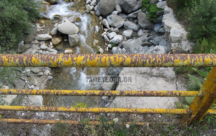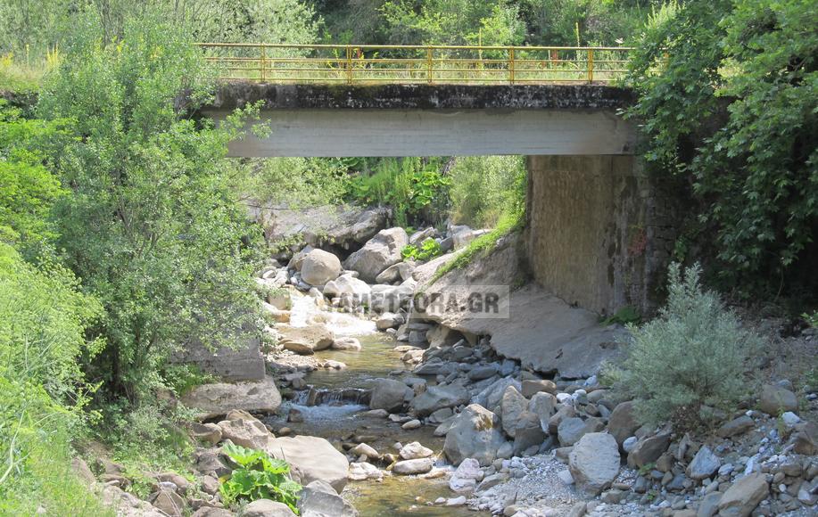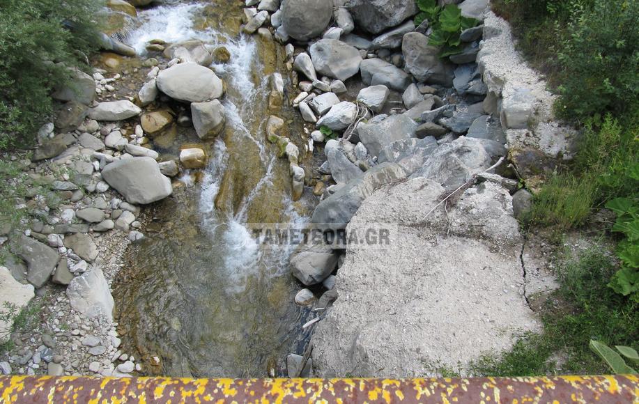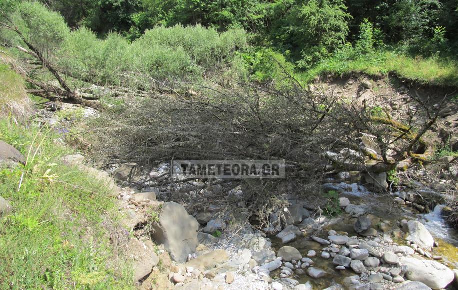 Εκτός από αυτό, είκοσι μέτρα πριν από τη γέφυρα, υπάρχουν πεσμένα μεγάλα δέντρα, κάθετα προς την ροή του νερού. Αυτά όταν τα μετακινήσει το νερό, θα φρακάρουν στη γέφυρα με κίνδυνο για το δρόμο, τη γέφυρα αυτή, την τοξωτή πέτρινη πεζογέφυρα που είναι 40 μέτρα παρακάτω, αλλά και για τον ανακαινισμένο νερόμυλο που τώρα λειτουργεί ως Κέντρο Παράδοσης και Πολιτισμού.