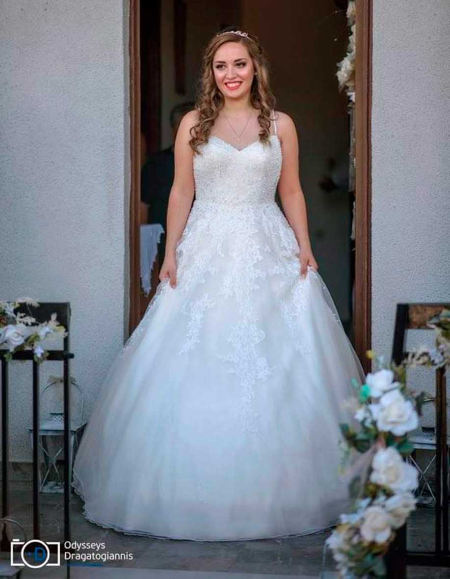 Όμορφη και γλυκιά η νύφη, έλαμπε μέσα στο πανέμορφο νυφικό που σχεδίασε γι’ αυτή η Σοφία Μαύρου Τζιουβάρα.