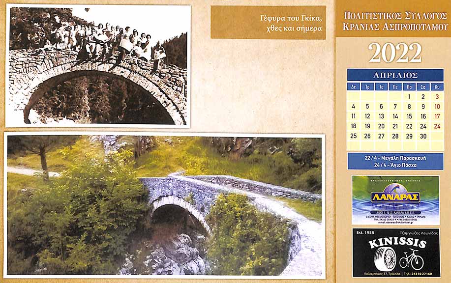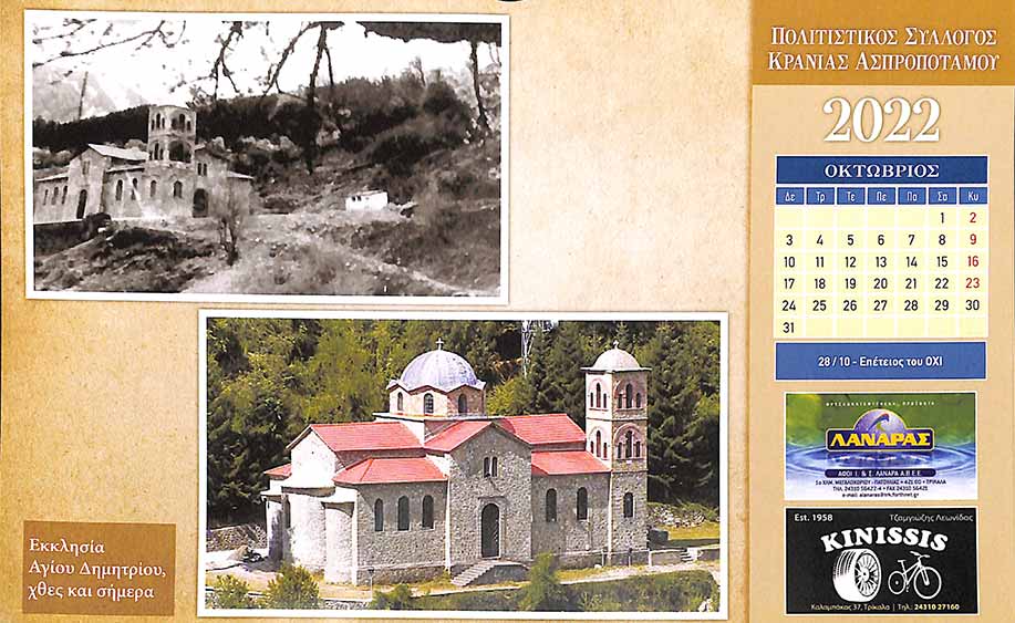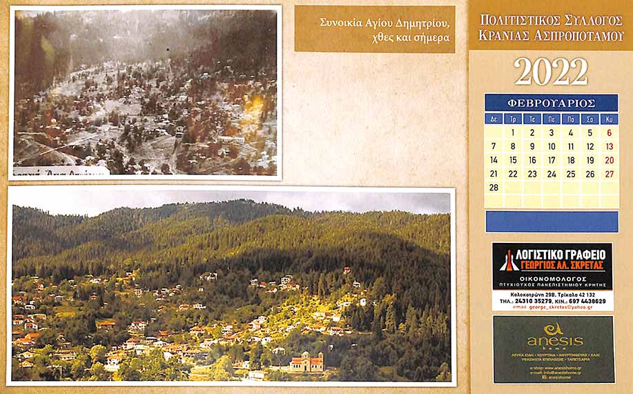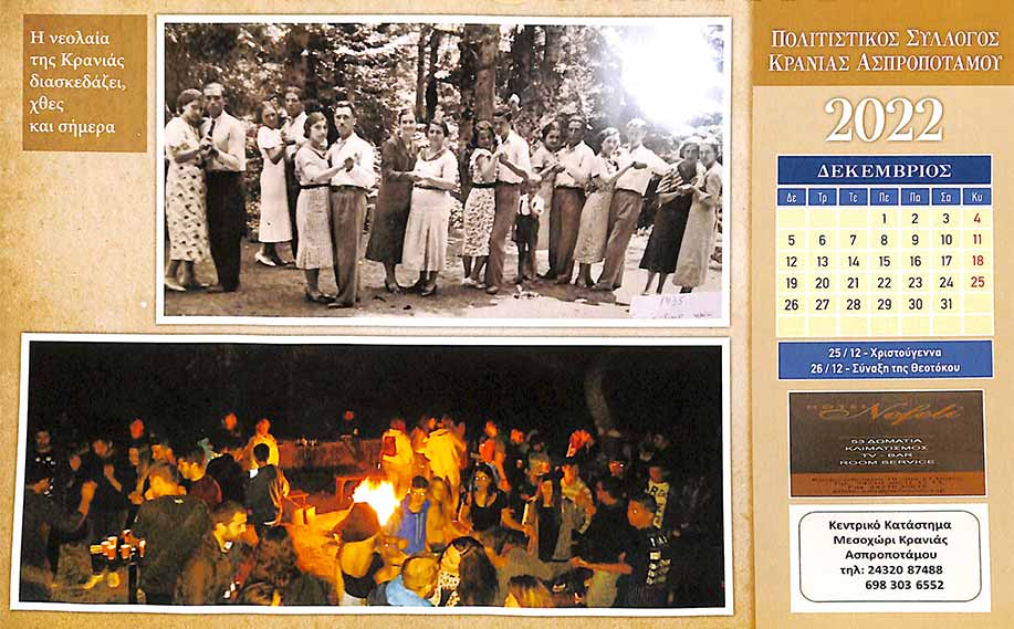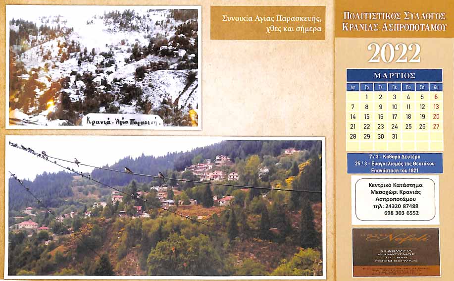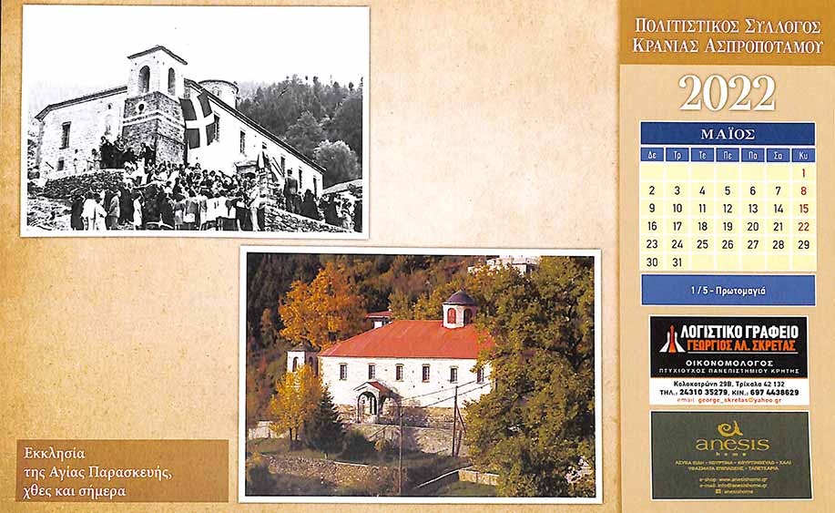 Η έκδοση ημερολογίων από τον Πολιτιστικό Σύλλογο Κρανιάς Ασπροποτάμου αποτελεί μια προσπάθεια προαγωγής και διαφύλαξης του πολιτισμού που ανέπτυξαν οι πρόγονοί μας.