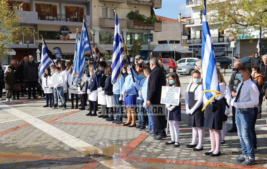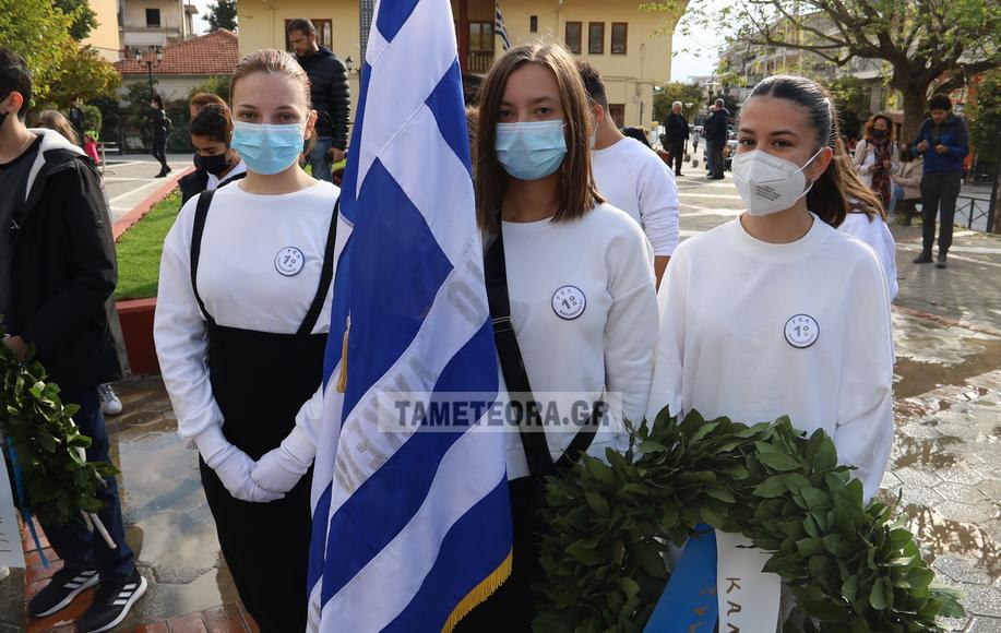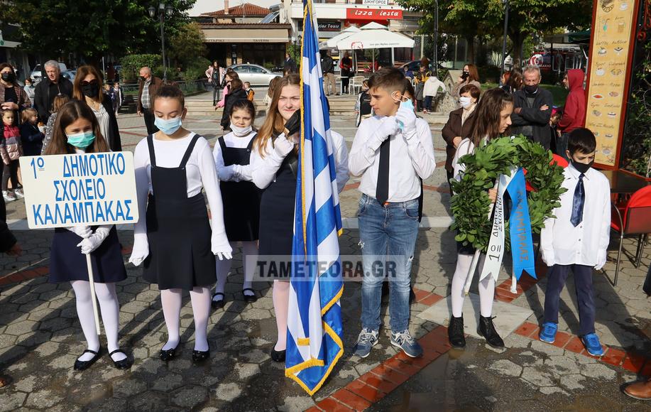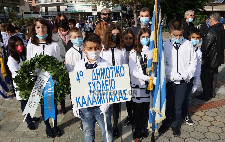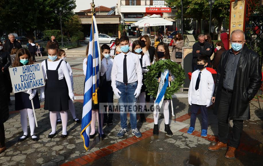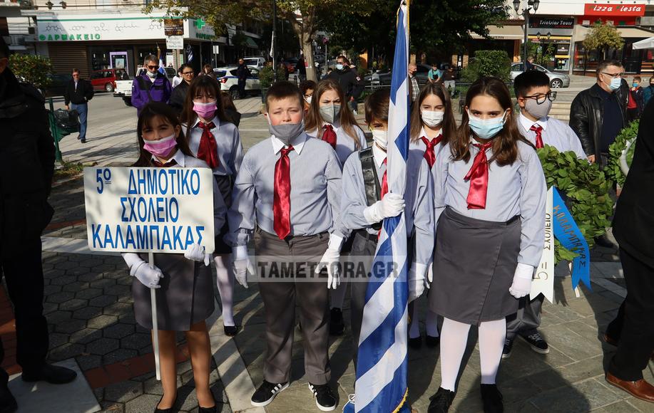 Στις προτομές των ηρώων Ευθυμίου Βλαχάβα και Χριστόδουλου Χατζηπέτρου στην Πλατεία Ρήγα Φεραίου Καλαμπάκας έγινε και φέτος η κατάθεση στεφάνων από μαθητές και μαθήτριες όλων των σχολείων της Α/θμιας και Β/θμιας Εκπαίδευσης της πόλης μας, παρουσία αντιδημάρχων, δημοτικών συμβούλων, των διευθυντών των σχολείων Α/θμιας και Β/θμιας εκπαίδευσης και πολιτών.