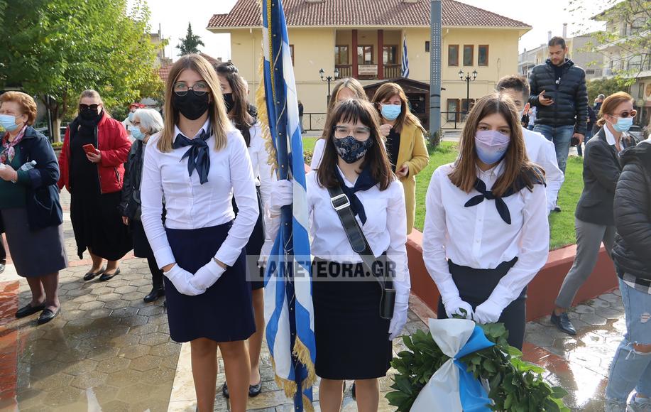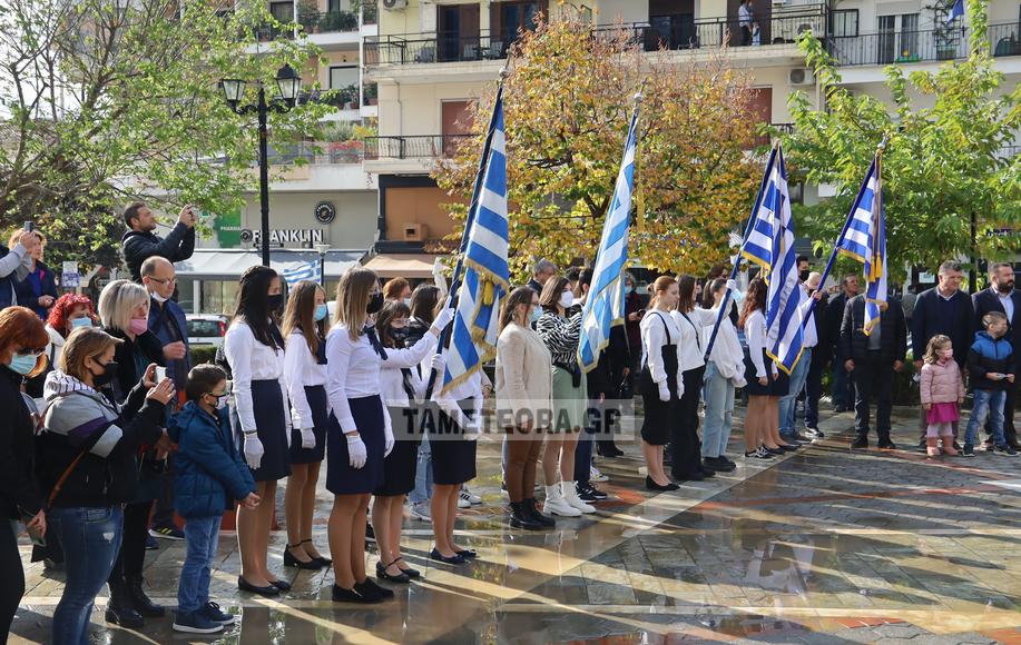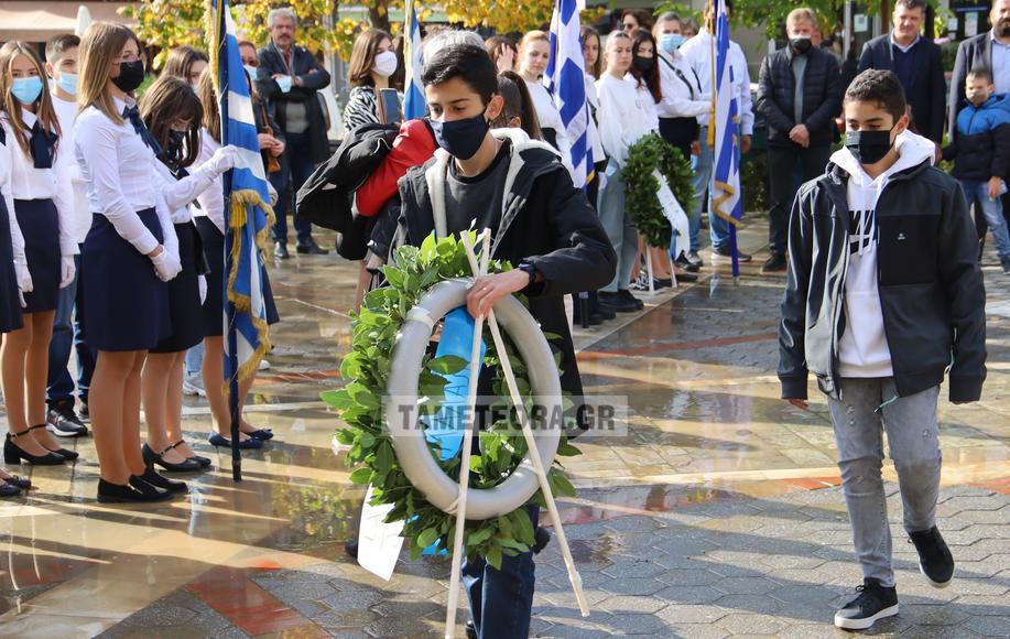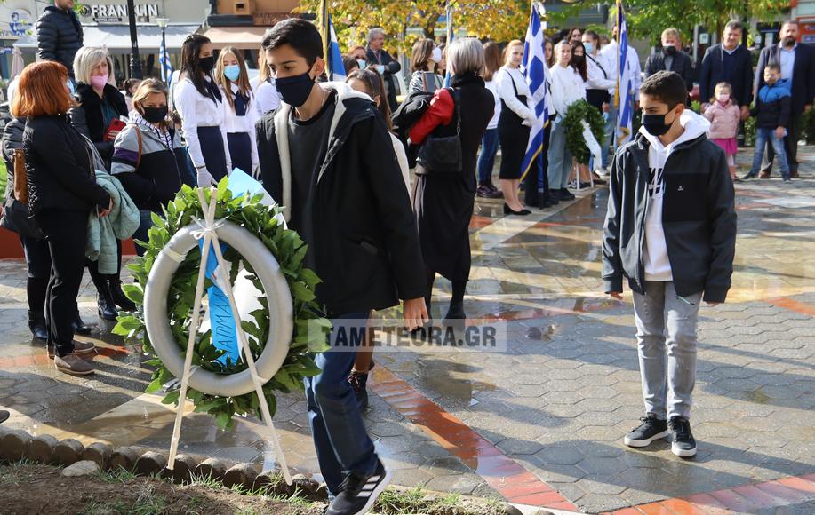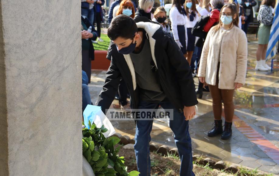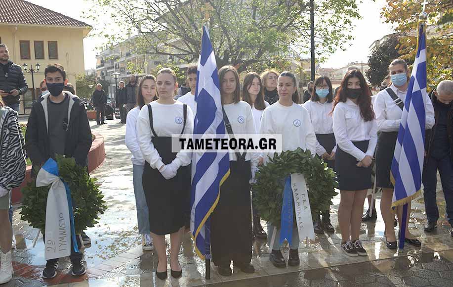 Στις προτομές των ηρώων Ευθυμίου Βλαχάβα και Χριστόδουλου Χατζηπέτρου στην Πλατεία Ρήγα Φεραίου Καλαμπάκας έγινε και φέτος η κατάθεση στεφάνων από μαθητές και μαθήτριες όλων των σχολείων της Α/θμιας και Β/θμιας Εκπαίδευσης της πόλης μας, παρουσία αντιδημάρχων, δημοτικών συμβούλων, των διευθυντών των σχολείων Α/θμιας και Β/θμιας εκπαίδευσης και πολιτών.