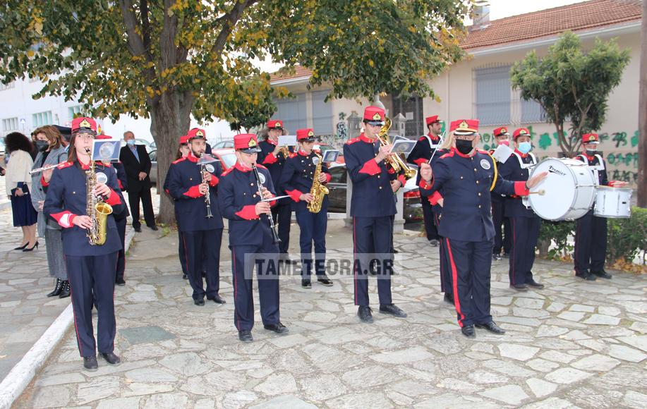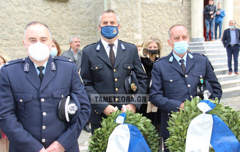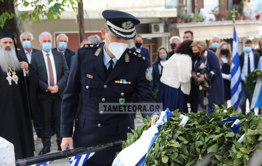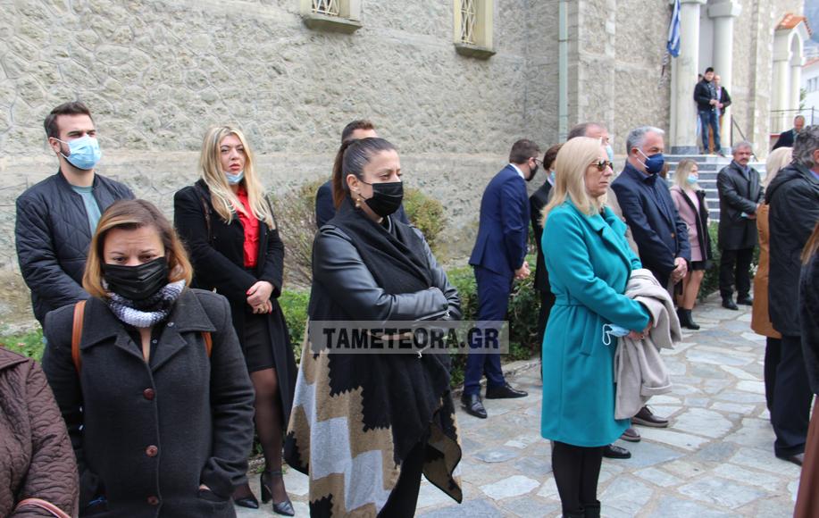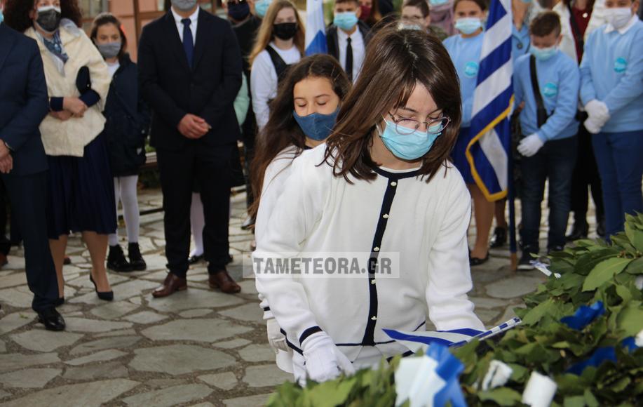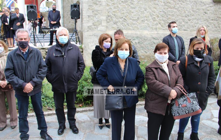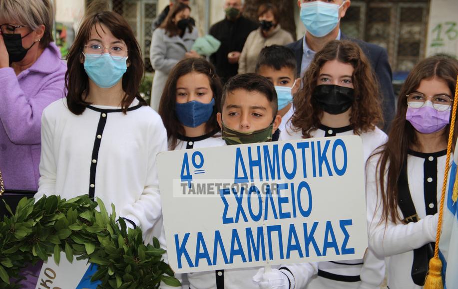 Αμέσως μετά την επίσημη Δοξολογία στον Μητροπολιτικό Ναό Αγίου Βησσαρίωνος τελέστηκε από τον Σεβασμιώτατο Μητροπολίτη Σταγών και Μετεώρων στο Ηρώο των πεσόντων στο προαύλιο του Ιερού Μητροπολιτικού Ναού Αγίου Βησσαρίωνος Καλαμπάκας επιμνημόσυνη δέηση και ακολούθησε κατάθεση στεφάνων.