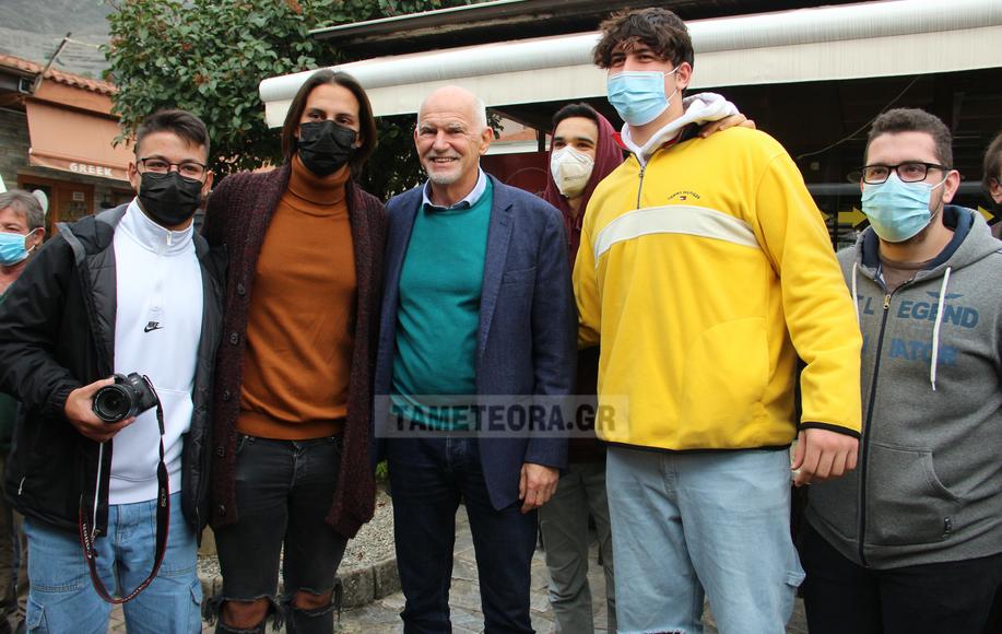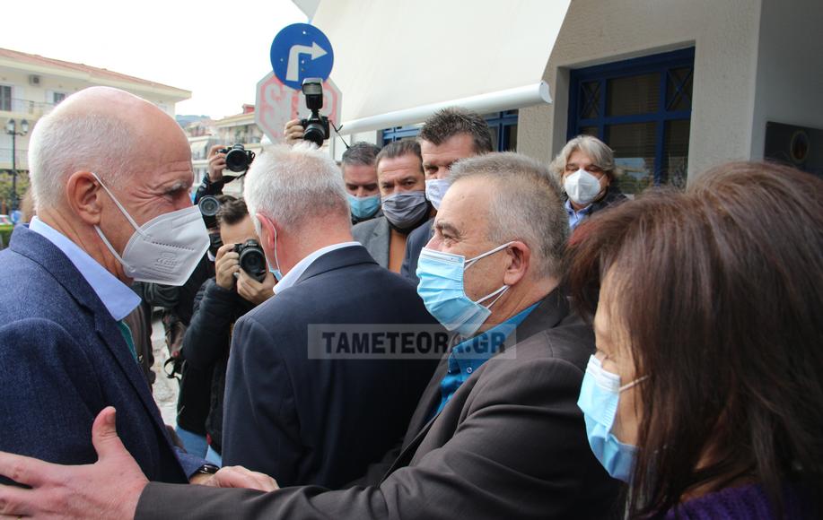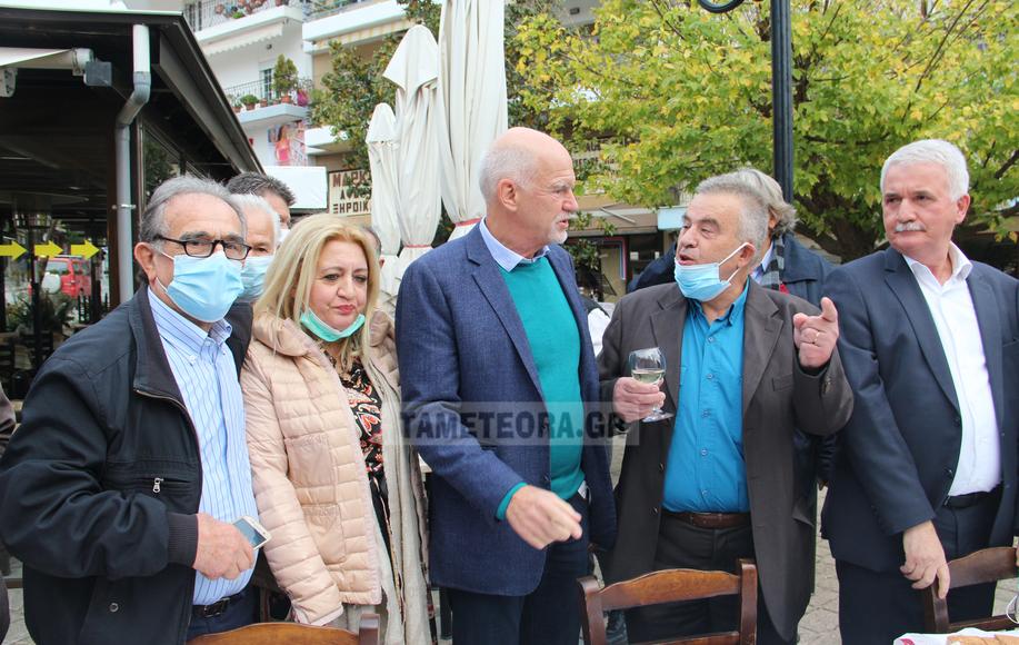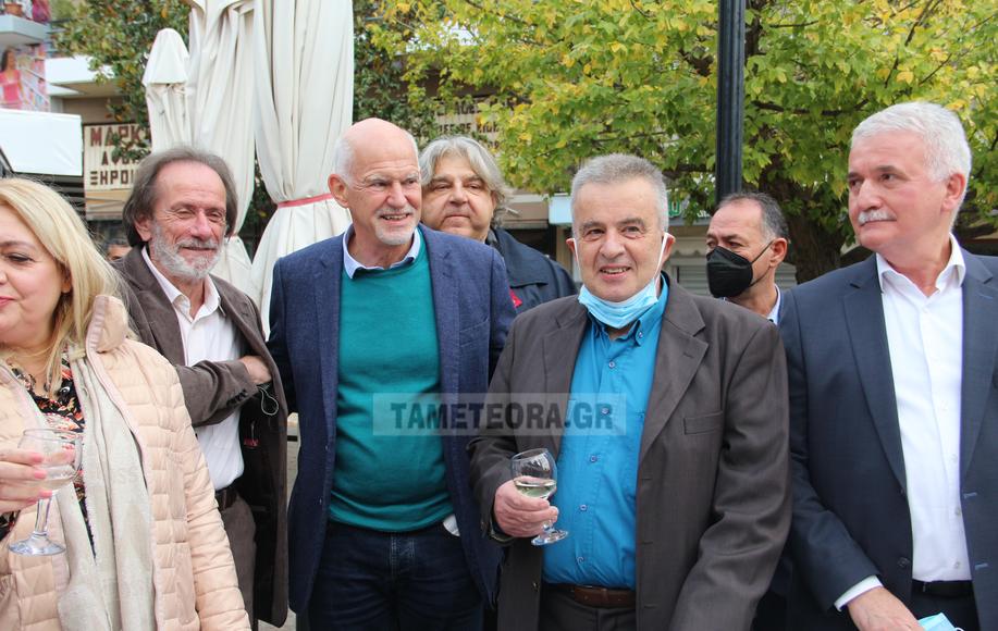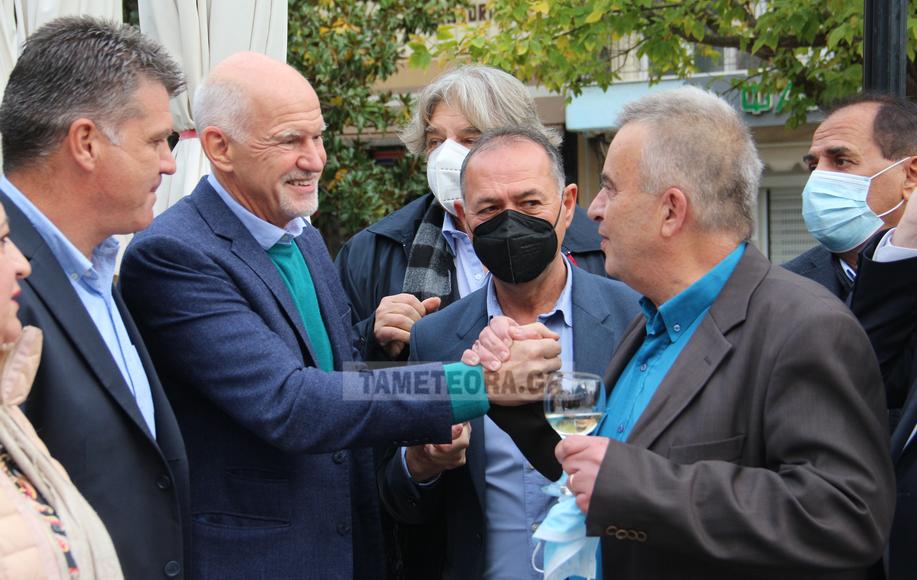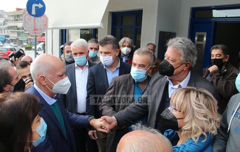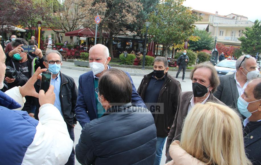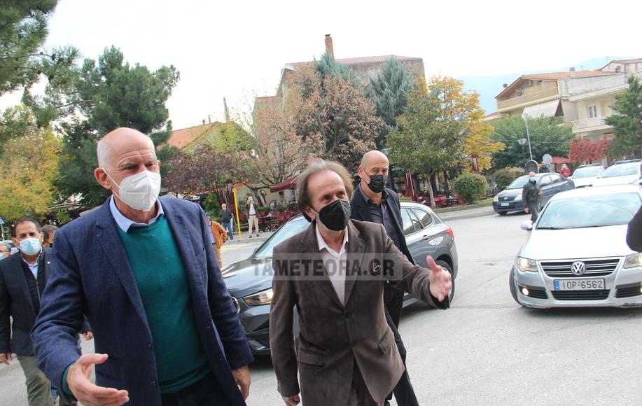 Τον κ. Παπανδρέου ανέμειναν τοπικά στελέχη του ΠΑ.ΣΟ.Κ. και του ΚΙΝ.ΑΛ. αρκετή ώρα στην είσοδο του Δημαρχείου, όπου τον υποδέχθηκε ο Δήμαρχος Μετεώρων Θεόδωρος Αλέκος και εκπρόσωποι της δημοτικής Αρχής, ο Πολιτευτής του ΚΙΝ.ΑΛ. Κώστας Φαμίσης, ο Γραμματέας του ΚΙΝΑΛ Καλαμπάκας Αθανάσιος Καρνέζης κ.ά.