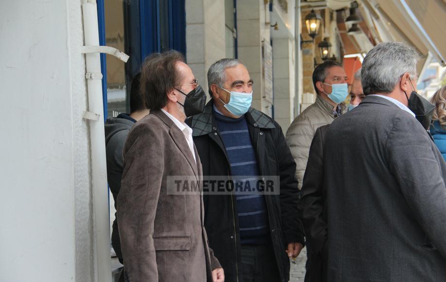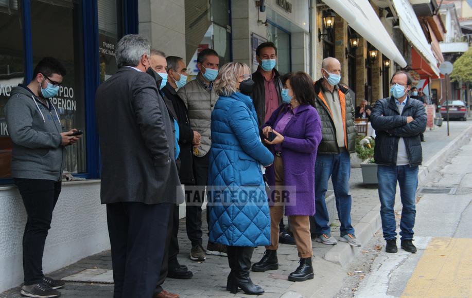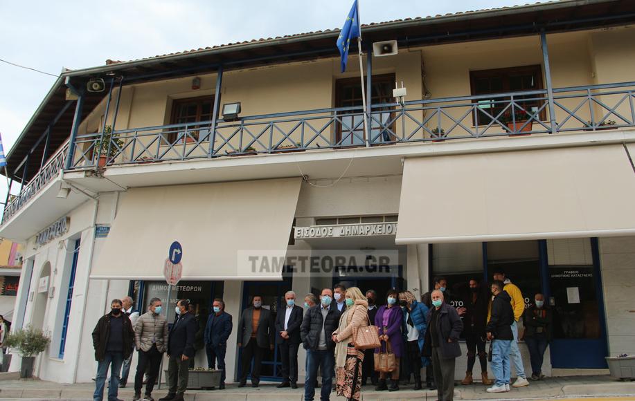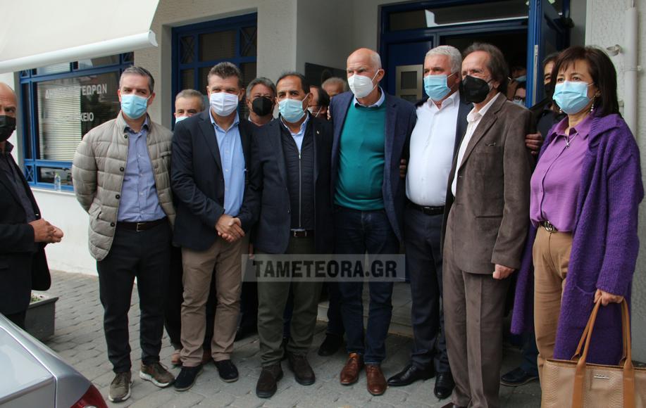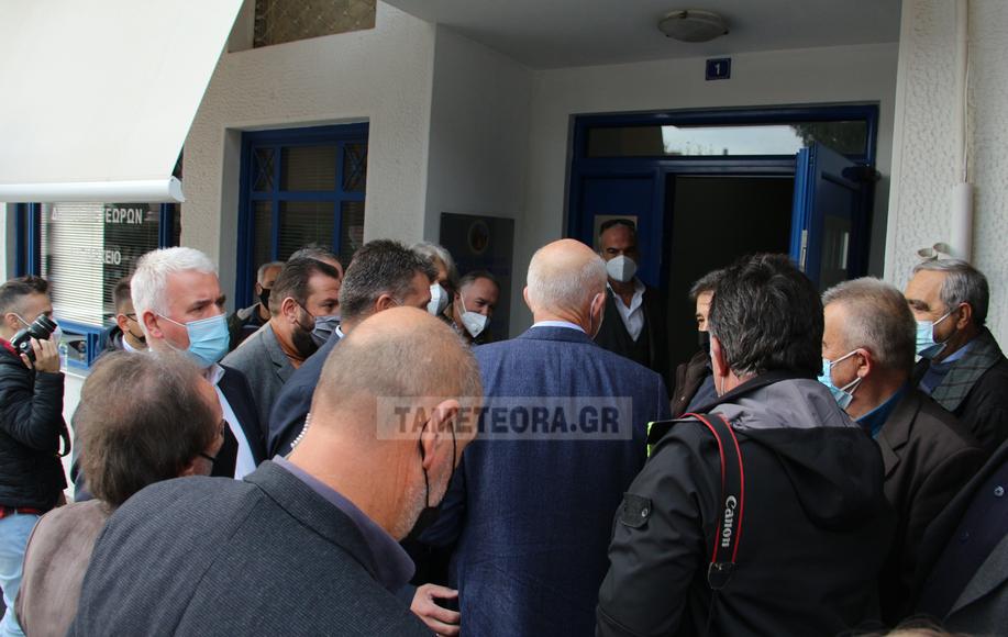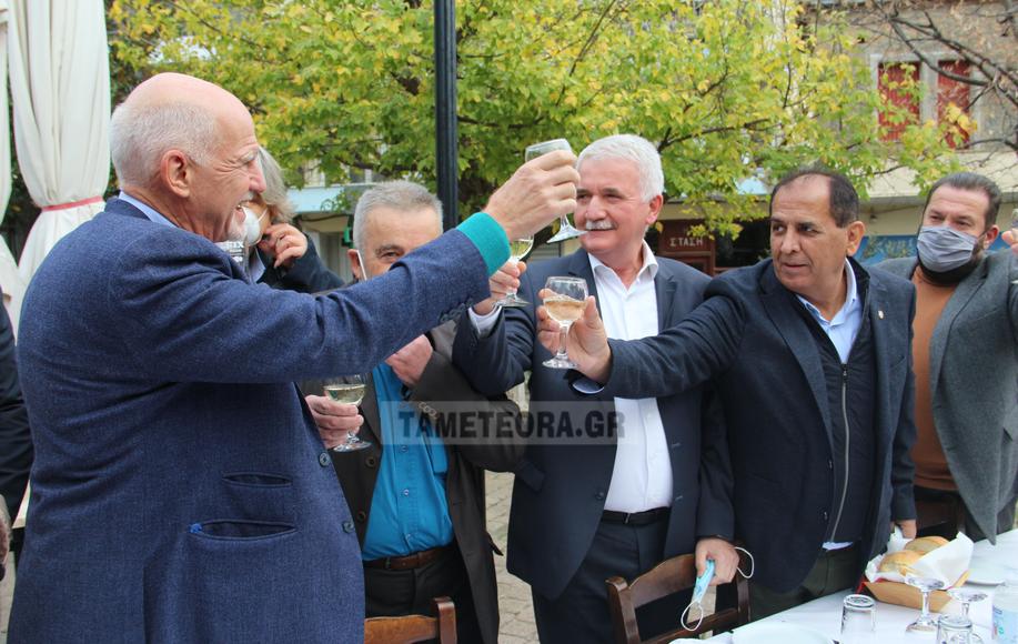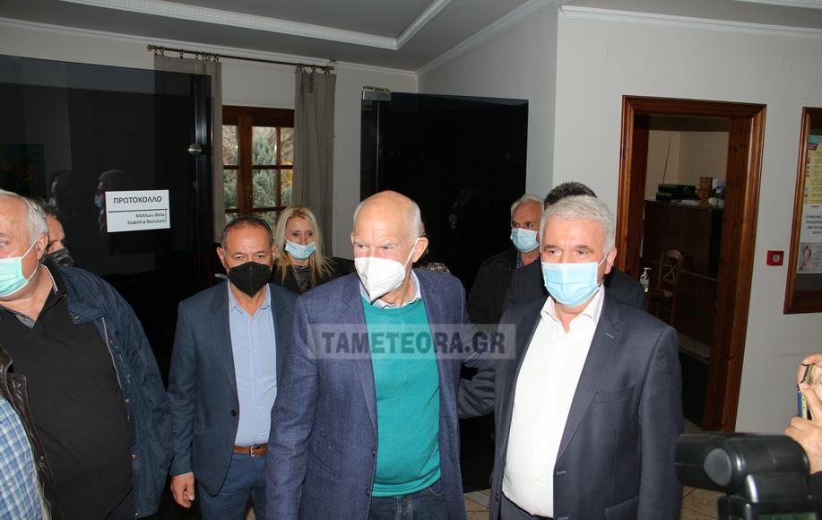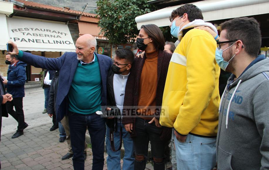 Τον κ. Παπανδρέου ανέμειναν τοπικά στελέχη του ΠΑ.ΣΟ.Κ. και του ΚΙΝ.ΑΛ. αρκετή ώρα στην είσοδο του Δημαρχείου, όπου τον υποδέχθηκε ο Δήμαρχος Μετεώρων Θεόδωρος Αλέκος και εκπρόσωποι της δημοτικής Αρχής, ο Πολιτευτής του ΚΙΝ.ΑΛ. Κώστας Φαμίσης, ο Γραμματέας του ΚΙΝΑΛ Καλαμπάκας Αθανάσιος Καρνέζης κ.ά.