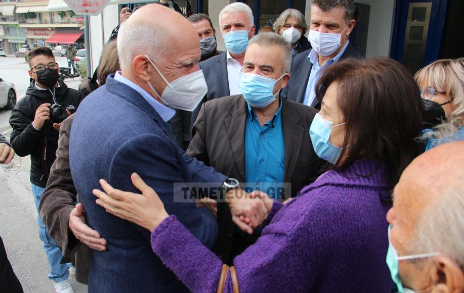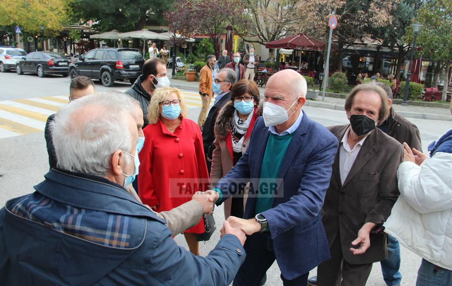 Σύντομο πέρασμα από την Καλαμπάκα πραγματοποίησε το μεσημέρι της Κυριακής ο πρώην Πρωθυπουργός Γιώργος Παπανδρέου στο πλαίσιο της περιοδείας του στη Θεσσαλία ενόψει των εσωκομματικών εκλογών για νέο Πρόεδρο στο Κίνημα Αλλαγής.