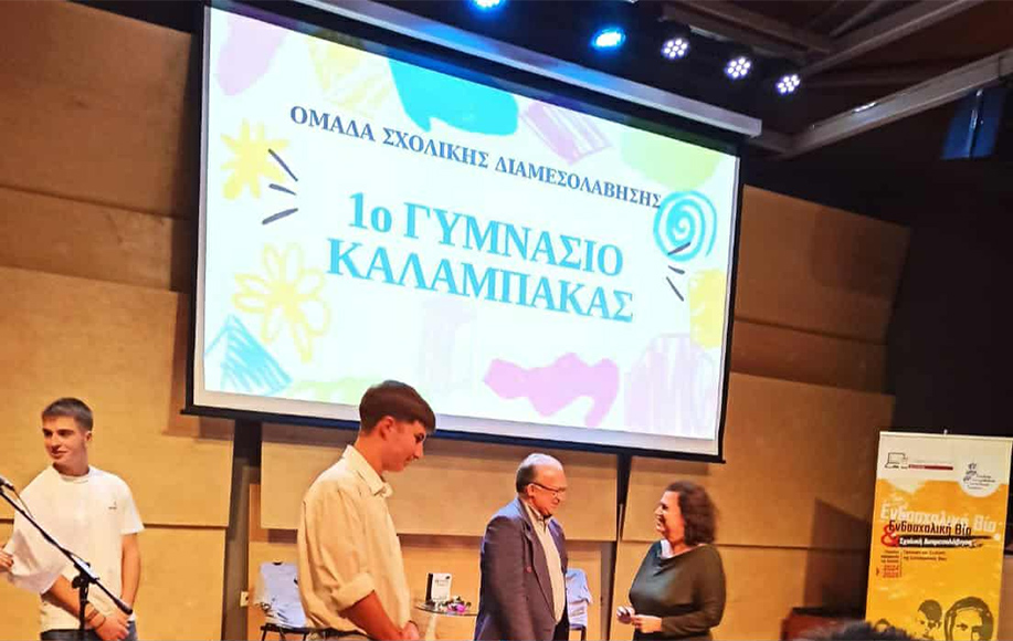 Βράβευση του 1ου Γυμνασίου Καλαμπάκας για το πρόγραμμα Σχολικής Διαμεσολάβησης