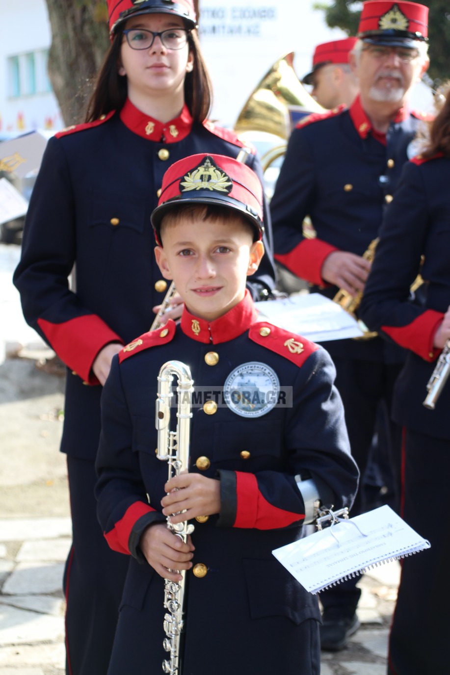 Αμέσως μετά την κατάθεση στεφάνων ακολούθησε ενός λεπτού σιγή και στη συνέχεια η ανάκρουση του Εθνικού μας Ύμνου από την Φιλαρμονική του Δήμου Μετέωρων.