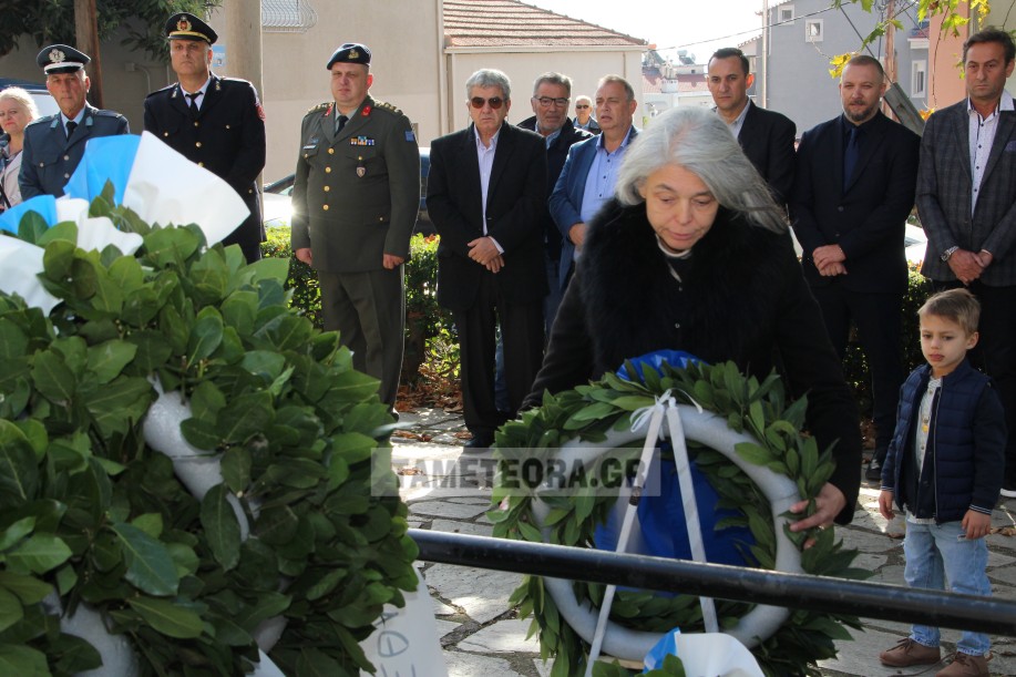 Εκείνοι όμως που χάθηκαν, εκείνο το διάστημα και είναι πάρα πολλοί. Σήμερα Κυριακή 19 Οκτωβρίου 2025, αμέσως μετά την επίσημη δοξολογία στον Ιερό Μητροπολιτκό Ναό Αγίου Βησσαρίωνος, στο προαύλιο του ναού, στο μνημείο των πεσόντων, τελέστηκε επιμνημόσυνη Δέηση από τον Πρωτοσύγγελλο της Ιεράς Μητρόπολης Σταγών και Μετεώρων και Καθηγούμενο της Ιεράς Μονής Μεγάλου Μετεώρου Πανοσιολογιότατο Αρχιμανδρίτη Νήφων Καψάλη και ακολούθησε κατάθεση Στεφάνων: