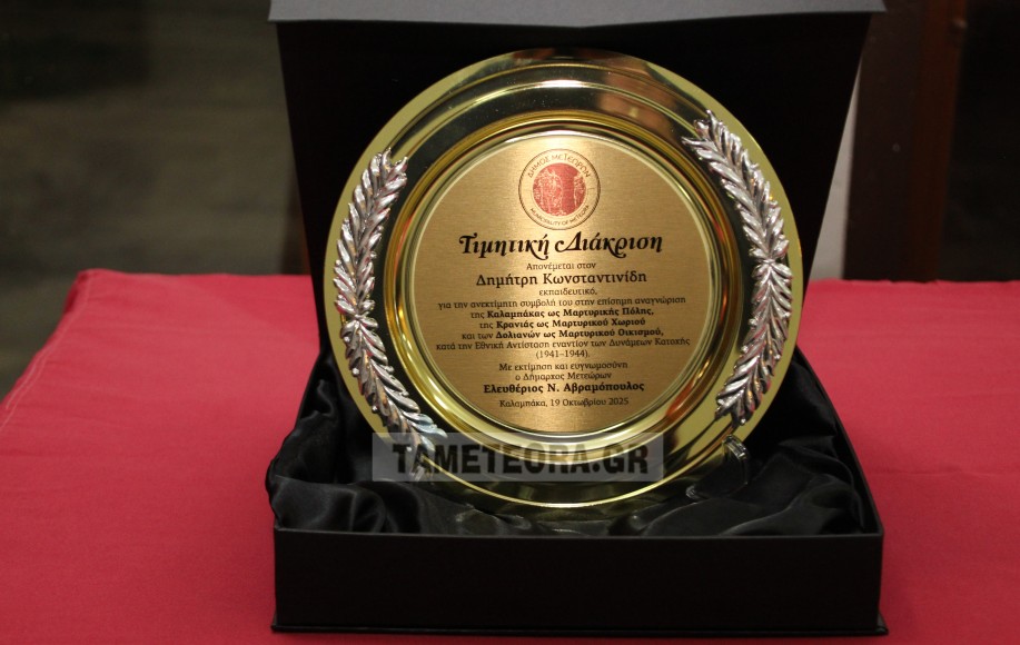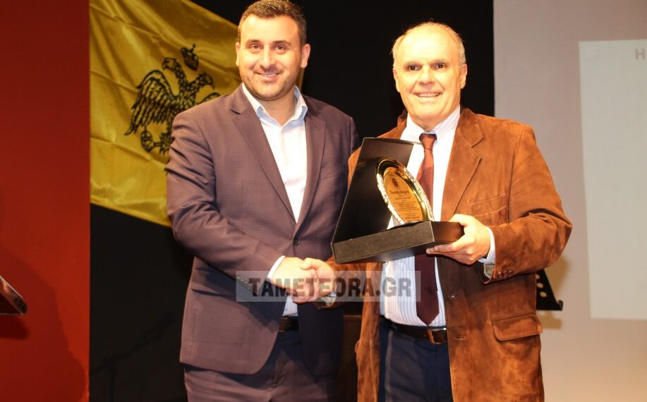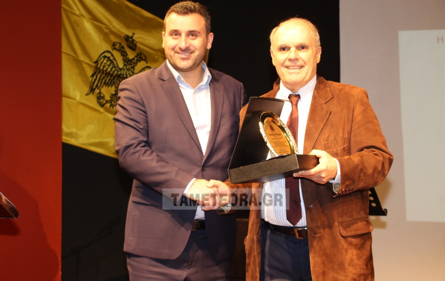 Η εκδήλωση ξεκίνησε με χαιρετισμό του Δημάρχου κ. Λευτέρη Αβραμόπουλου και απονομή τιμητικής πλακέτας από το Δήμαρχο στον κ. Κωνσταντινίδη.