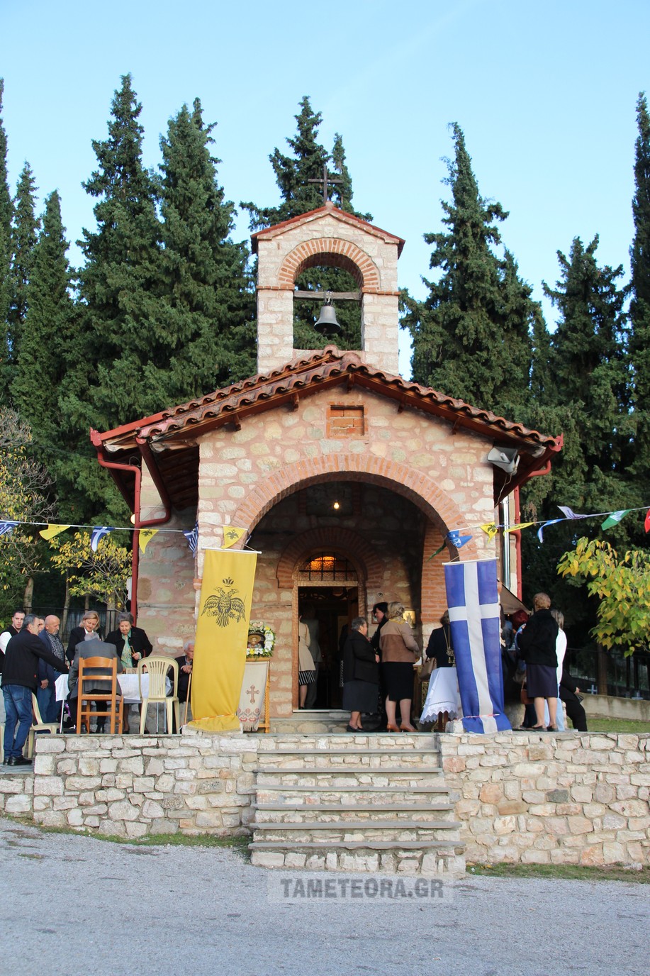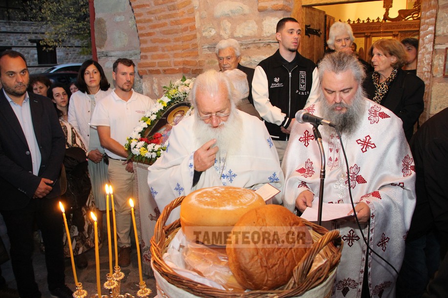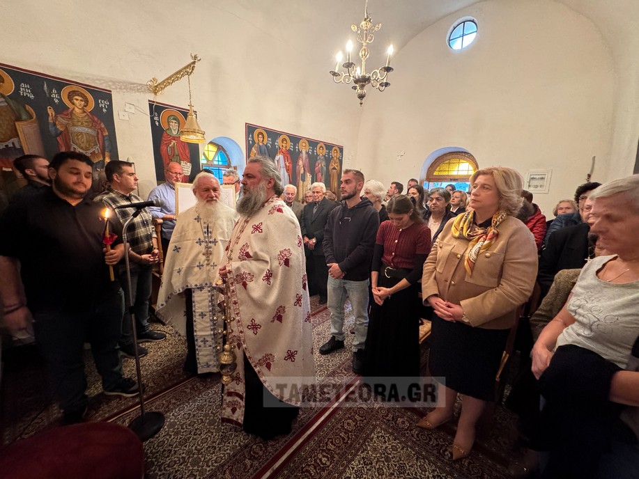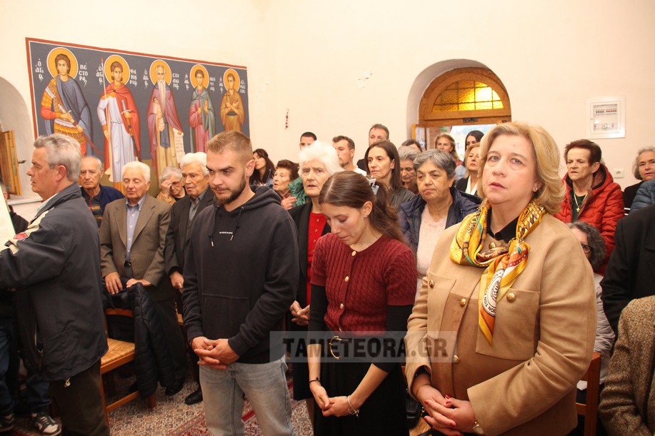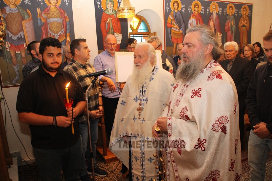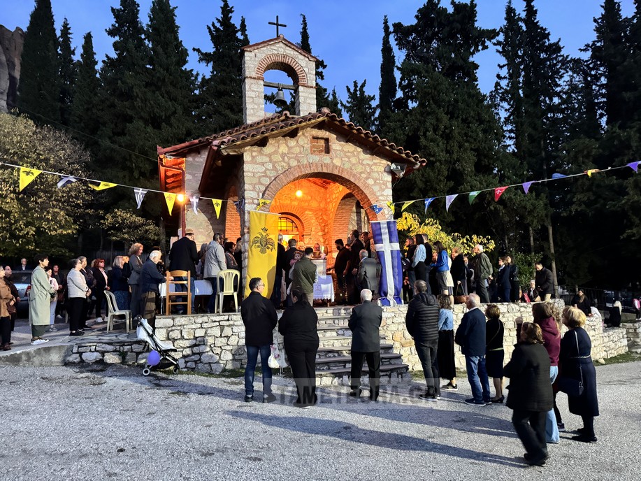 Tελέστηκε στο παρεκκλήσι του Αγίου Δημητρίου Καλαμπάκας ο πανηγυρικός εσπερινός μετ’ αρτοκλασίας επί τη εορτή του Μεγαλομάρτυρος Αγίου Δημητρίου του Μυροβλήτου από τον τον π. Ιώαννη Ζώτο και τον π. Δημήτριο Φωτόπουλο ενώ συμπροσευχόμενος στο ιερό βρίσκονταν ο π. Δημήτριος Σπυρόπουλος.