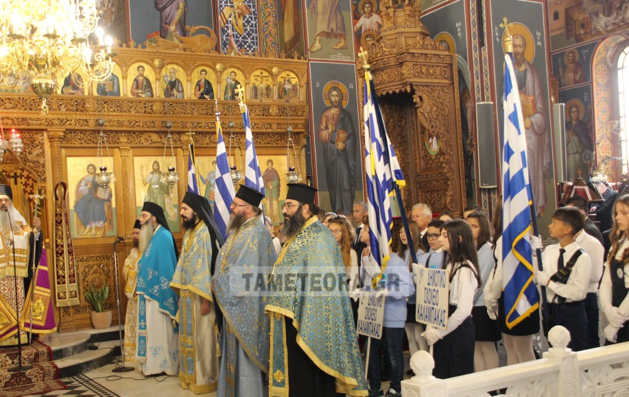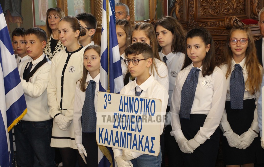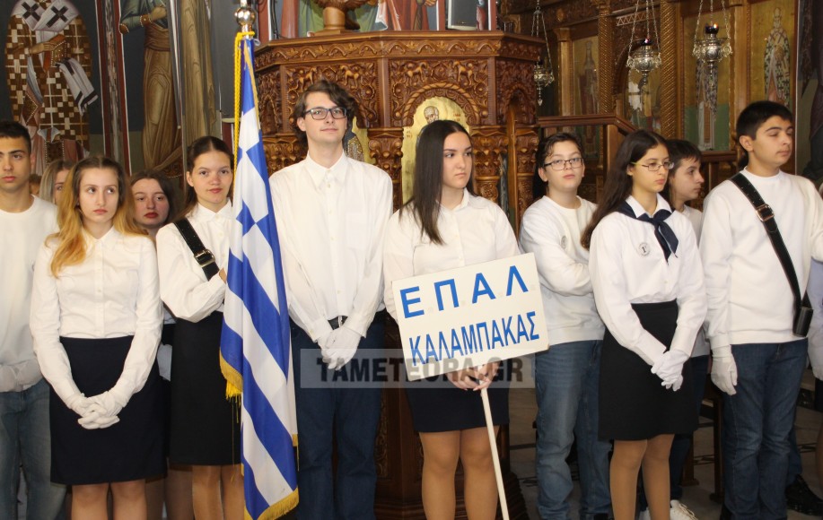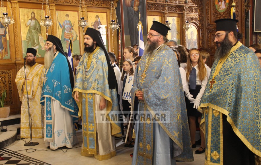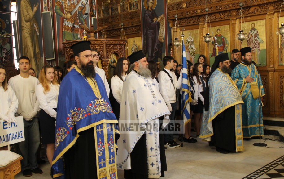 Στη δοξολογία, που τελέστηκε προεξάρχοντος του Σεβασμιωτάτου Μητροπολίτη Σταγών και Μετεώρων κ. Θεοκλήτου, παρευρέθηκαν οι πολιτικές, στρατιωτικές και εκπαιδευτικές αρχές της περιοχής, εκπρόσωποι συλλόγων, μαθητές και πλήθος πολιτών.