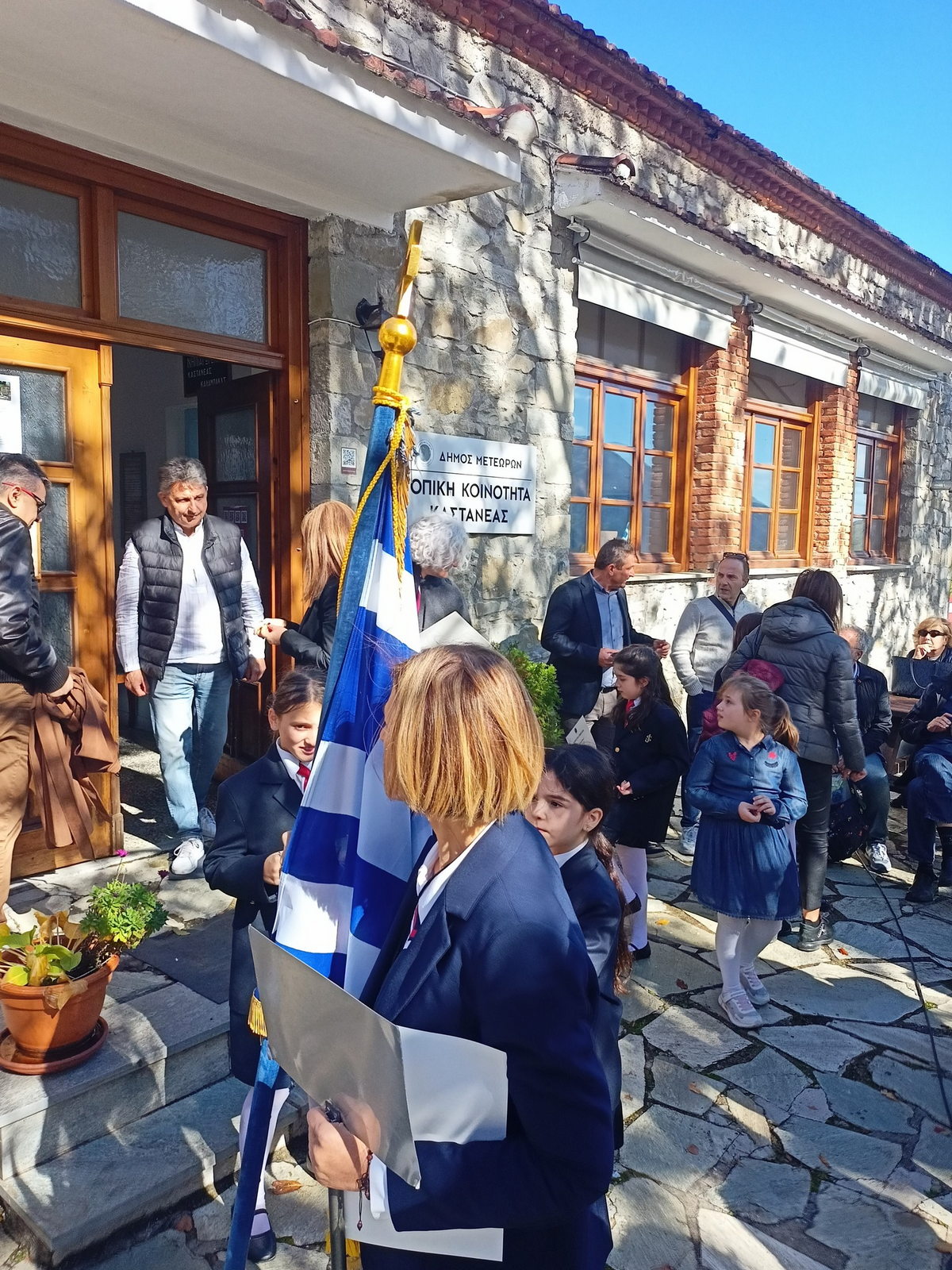 Εδώ στη Μαρτυρική Καστανιά όπου η Εθνική Επέτειος της 28ης Οκτωβρίου έγραψε τη δική της ιστορία…!! Μια ιστορία βαθιάς συγκίνησης και περηφάνειας. 27 χρόνια από το χτύπημα του τελευταίου κουδουνιού κι όμως… σαν να μην πέρασε μια μέρα. Οι δρόμοι τα σοκάκια το παλιό σχολείο και η εκκλησία πλημμύρισαν από παιδικές φωνές χαμόγελα και ζωή.