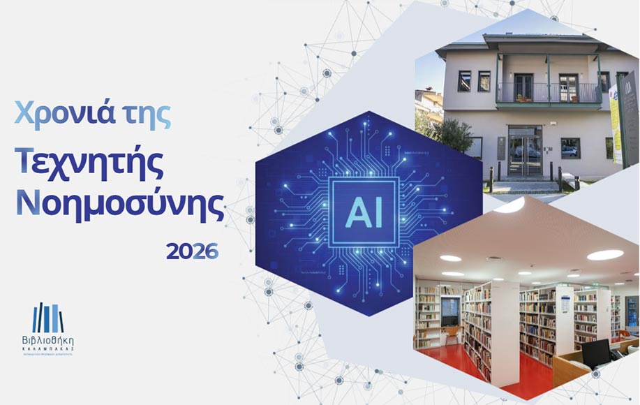 Η Βιβλιοθήκη Καλαμπάκας με ιδιαίτερη χαρά ανακοινώνει ότι το έτος 2026 θα αφιερωθεί στην «Τεχνητή Νοημοσύνη (ΑΙ)» θέτοντας την τεχνολογία στο επίκεντρο των δράσεων, της έρευνας και της μάθησης σε διεθνές επίπεδο.