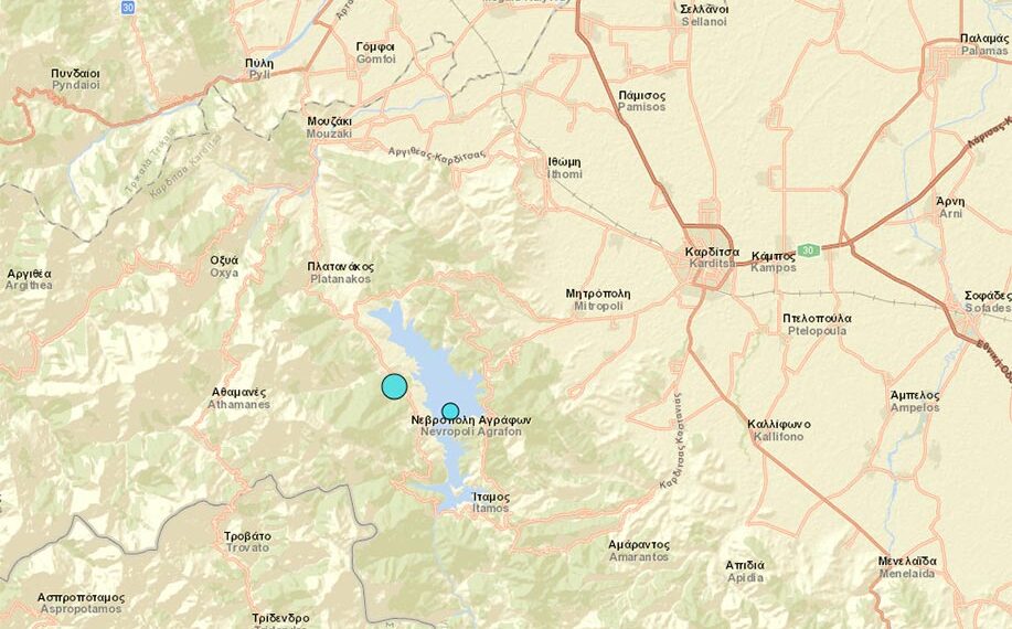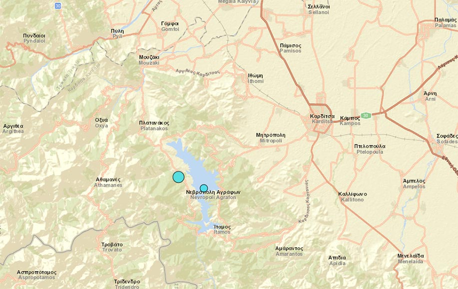 Σεισμός σημειώθηκε πρίν απο λίγο νοτιοδυτικά της Καρδίτσας (στη λίμνη Πλαστήρα) με αποτέλεσμα να κουνηθεί και η Καλαμπάκα.