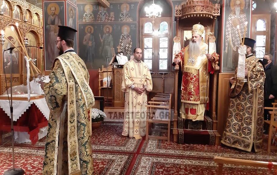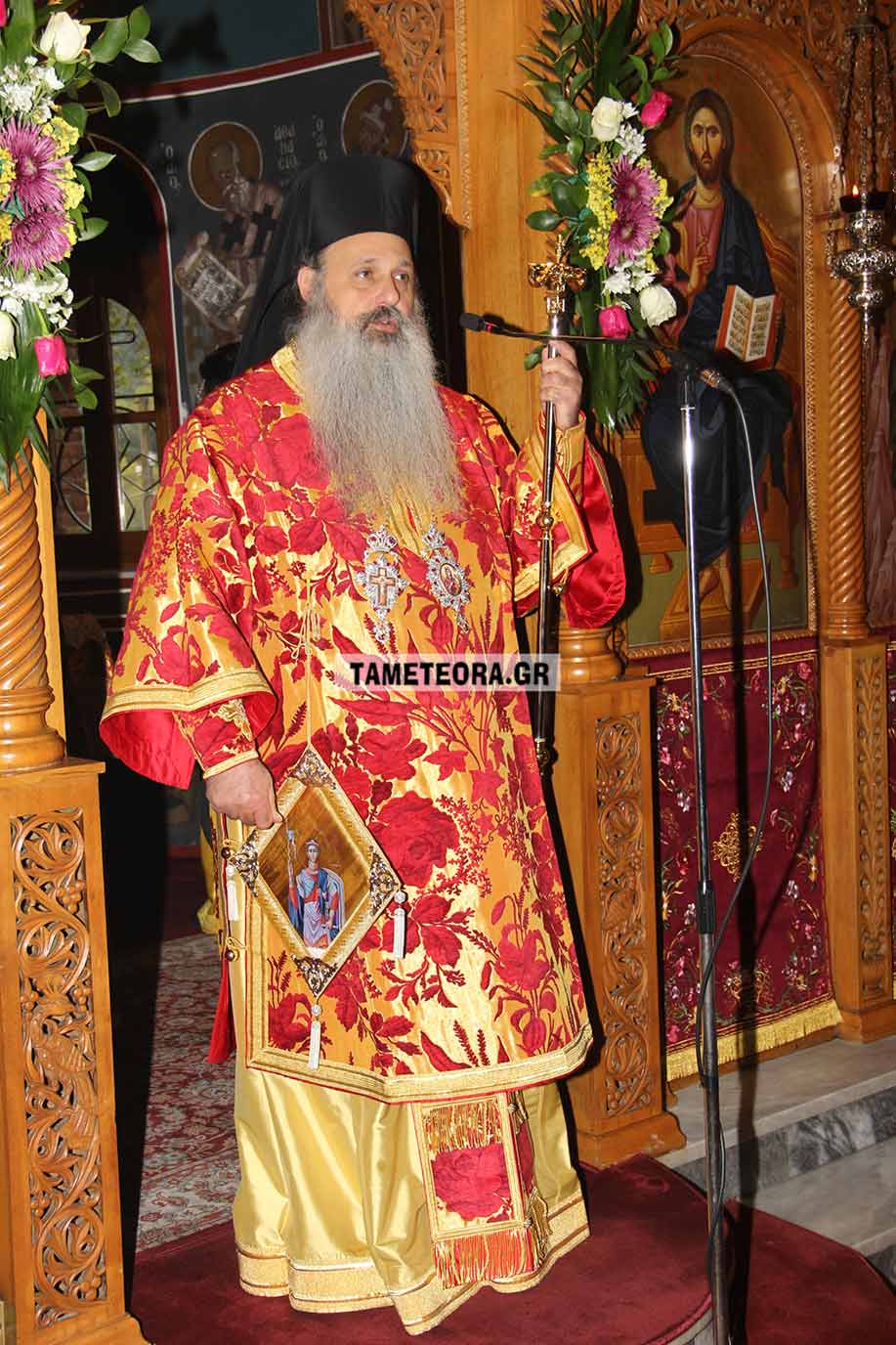 Στη Θεία λειτουργία χοροστάτησε ο Σεβασμιωτάτος Μητροπολίτης Σταγών & Μετεώρων κ. Θεόκλητος, ο οποίος στο θείο κήρυγμα αναφέρθηκε στους αγίους μάρτυρες της Εκκλησίας, οι οποίοι με τη Χάρη του Θεού έζησαν τα μαρτύριά τους με χαρά, δοξάζοντάς Τον.