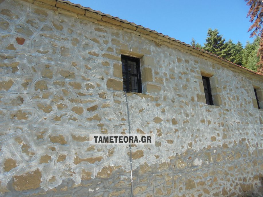Το κτίσμα είναι πέτρινο και στη νότια είσοδο, δεξιά και αριστερά, είναι λαξευμένα έλατα σε κάθετες πέτρες.