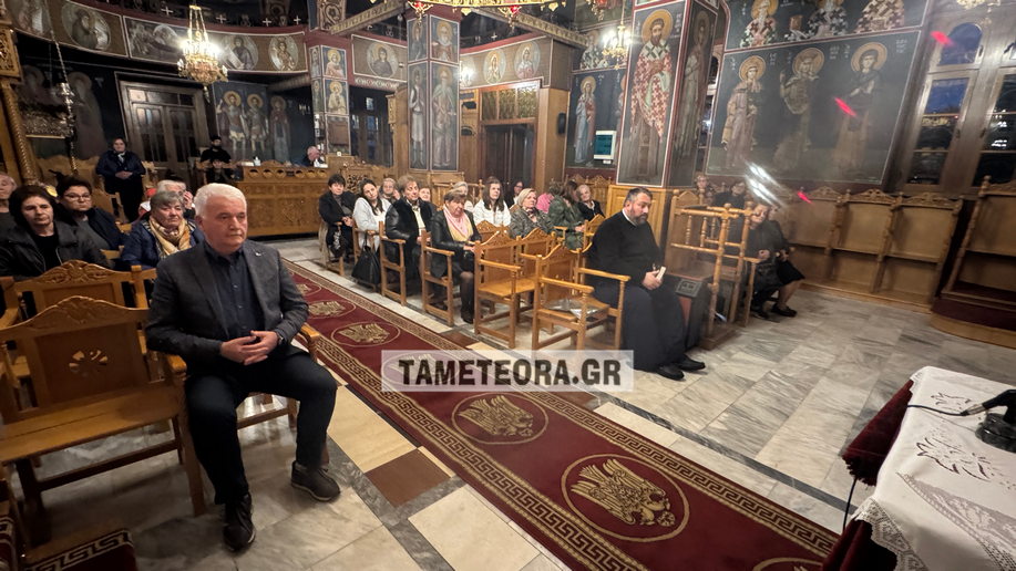 Παρουσία αρκετού κόσμου, ανάμεσα στους οποίους ήταν και ο τέως Δήμαρχος Μετεώρων Θεόδωρος Αλέκος και η τοπική σύμβουλος Σταυρούλα Κύρου, ο π. Θεοφάνης μίλησε για το θέμα ‘’Ο εκκλησιασμός στη σημερινή εποχή’’.