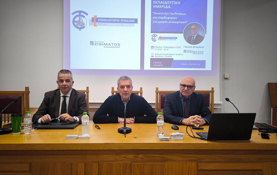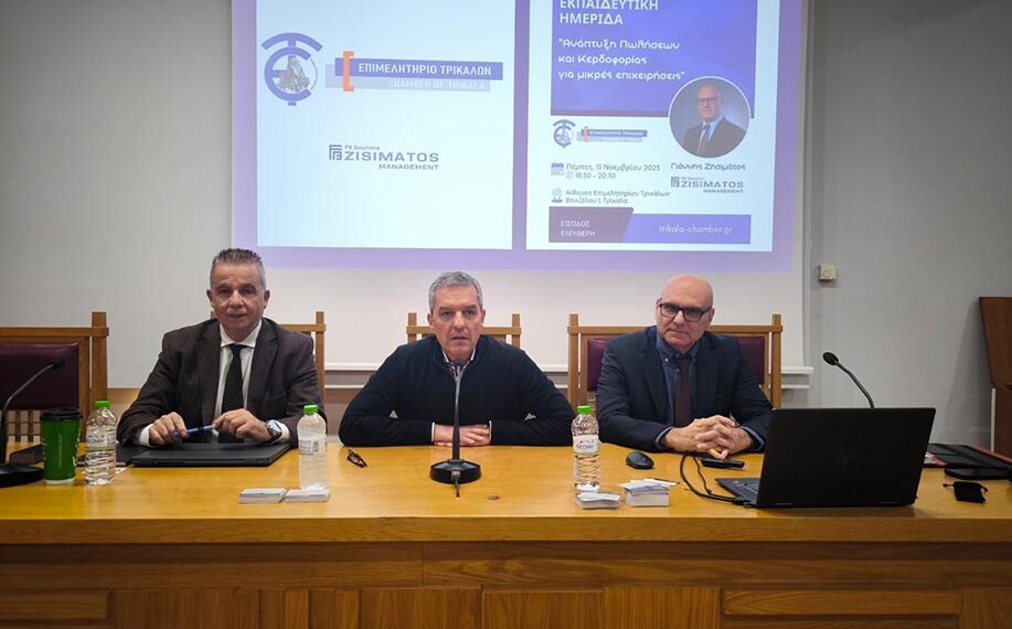 Με επιτυχία πραγματοποιήθηκε η πρώτη εκπαιδευτική ημερίδα με θέμα: «Ανάπτυξη Πωλήσεων και Κερδοφορίας για Μικρές Επιχειρήσεις» της νέας σειράς «Level Up Your Business» που υλοποιείται από το Κέντρο Επιχειρηματικής Εκπαίδευσης του Επιμελητηρίου Τρικάλων.