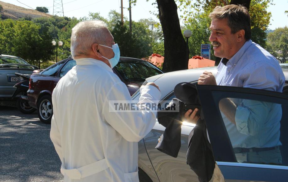 Στο Κέντρο Υγείας βρέθηκε για να υποδεχθεί τον πρώην Υπουργό στην πόλη μας και ο Δήμαρχος Μετεώρων, Θεόδωρος Αλέκος, μαζί με τους Αντιδημάρχους Γιώργο Παπανικολάου και Νίκο Μπαντανίκα.